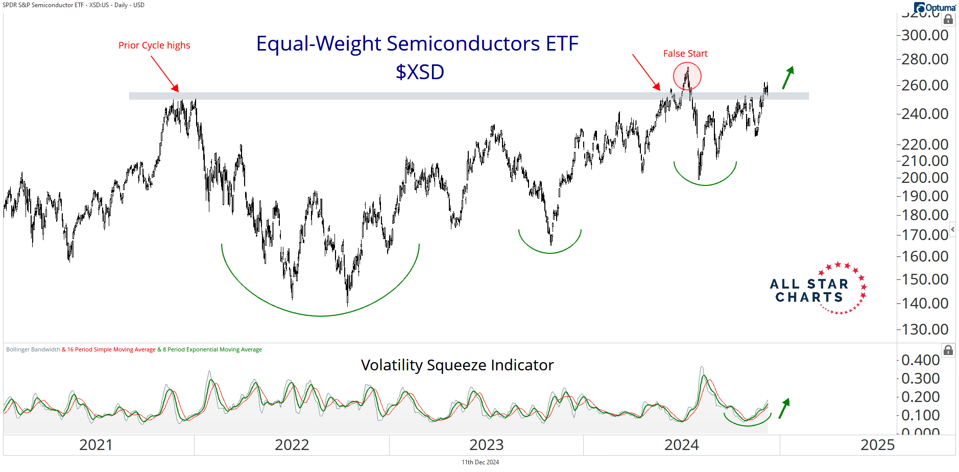 Unlike traditional cap-weighted benchmarks, XSD provides a much broader view of what’s going on with these stocks. And right now, it’s telling us everything is good with semis.