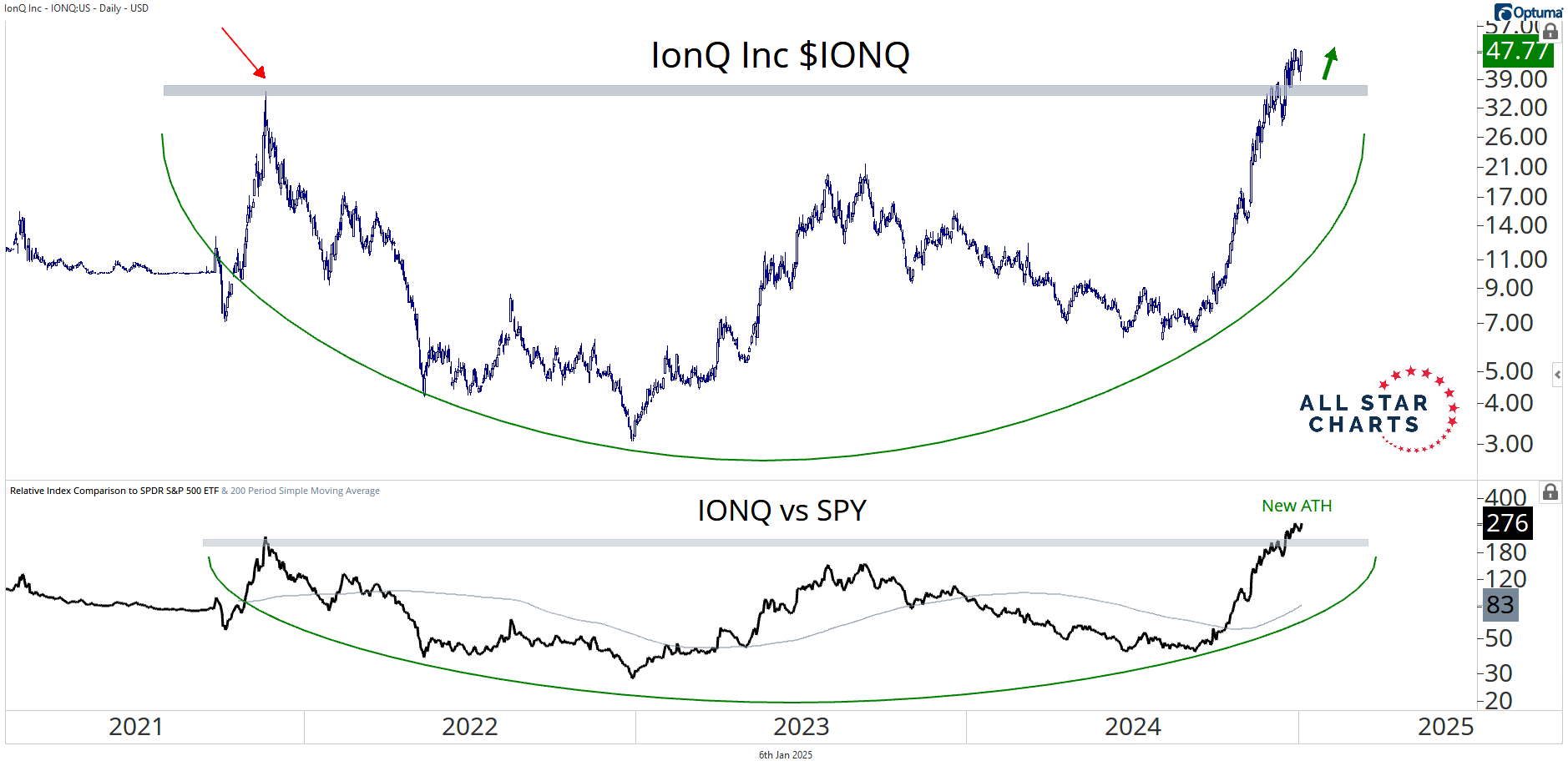 IONQ broke through a big resistance zone recently, successfully reclaiming its prior cycle high from 2021 on both absolute and relative terms.