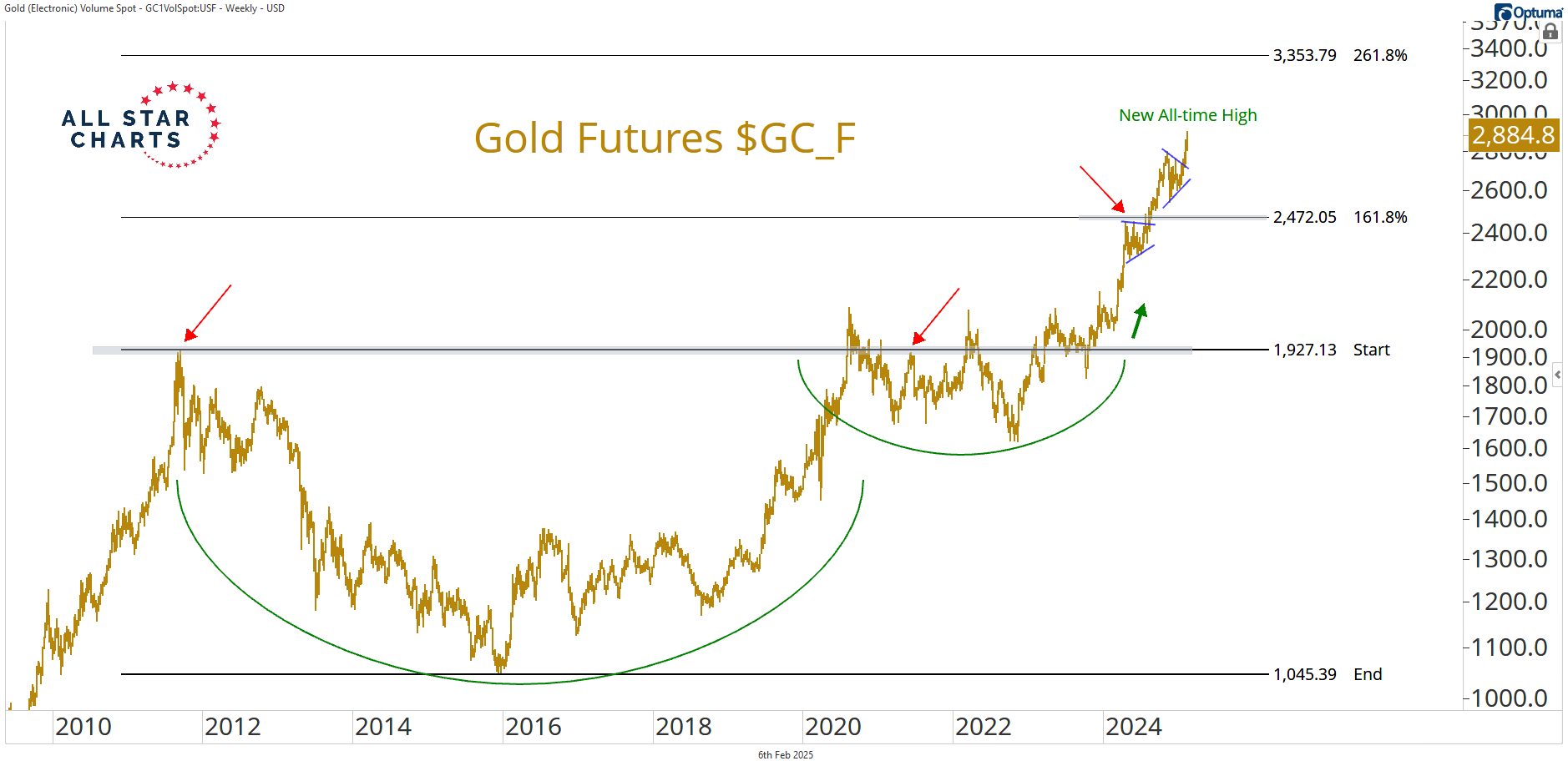 Gold has been an absolute monster since breaking out of that massive base last year.