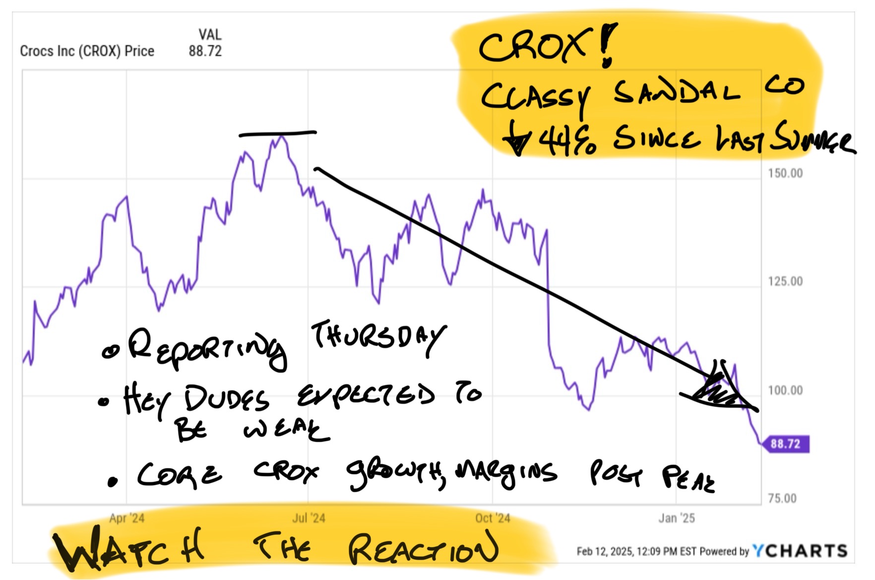 The better tell right now for "how much bad news is in these stocks" comes Thursday from, believe it or not, Crocs. The maker of timeless, classic plastic sandals is down 44% from the highs of last summer and seemingly every day for about the last month, after cancelling an appearance at a popular conference for the first time in ages.