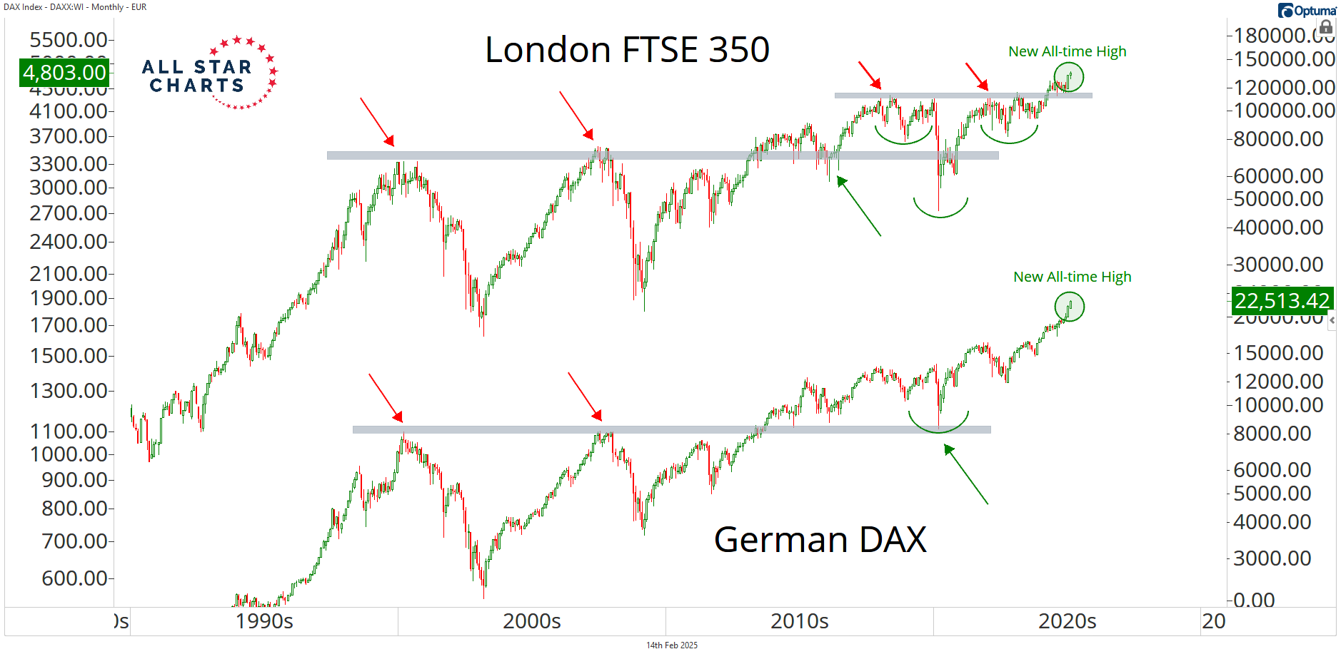 Just look at the German DAX and the London FTSE 350 both closing the week at their highest level in history.