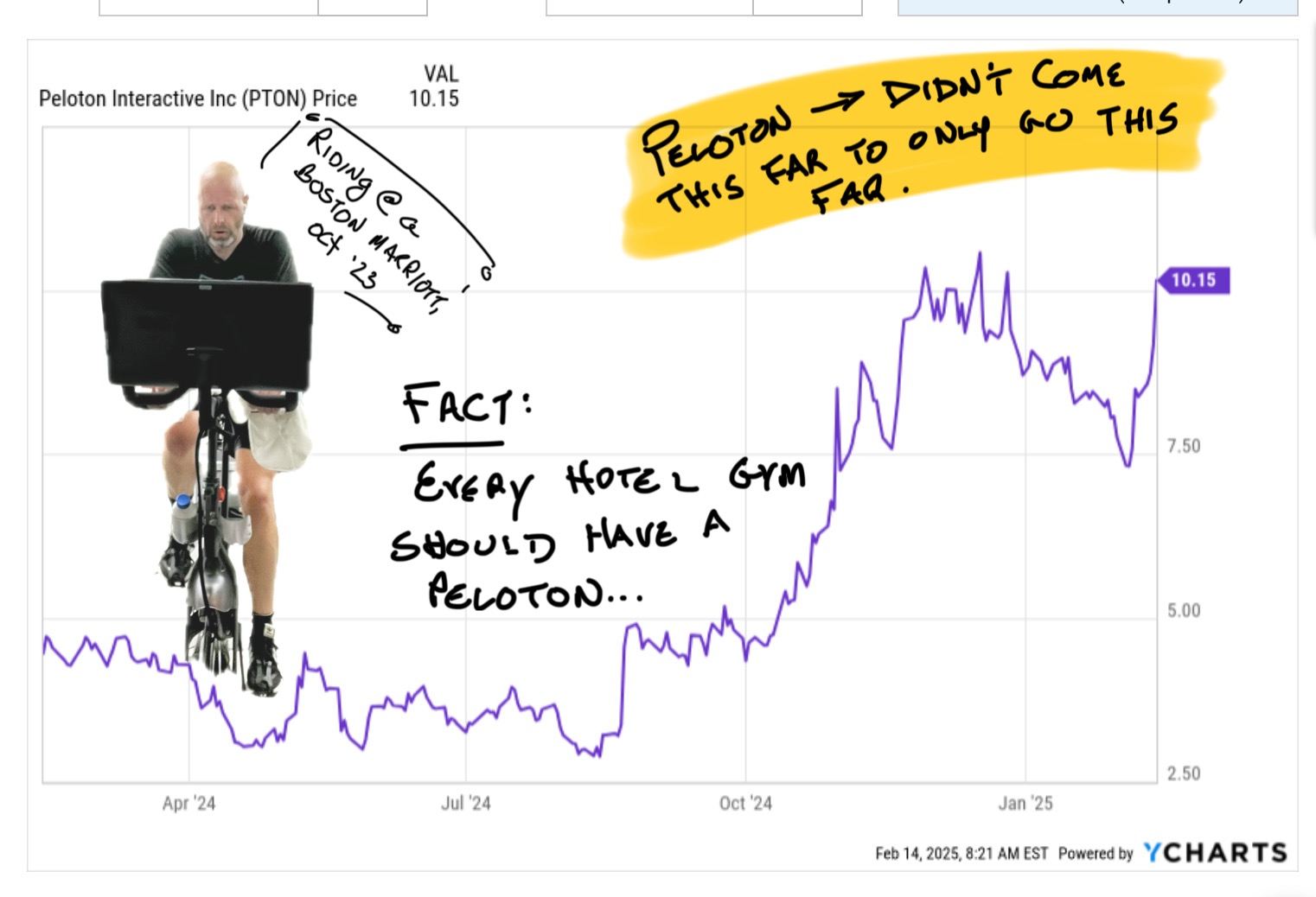 My hotel has a Peloton! That's good news, not just because I'm a little OCD about riding my bike or even that I'm working on a 100-day streak. Hotel gyms were once a fairly big initiative at Peloton. It makes more sense than you'd think. Hotel gyms are, for the most part, absolute crap. Bad equipment, and not many customers pay extra for a good gym. They don't earn much, so hotels don't pay much to make them nicer. There's always way more funk in the air than you'd expect anyplace with four or more stars.
