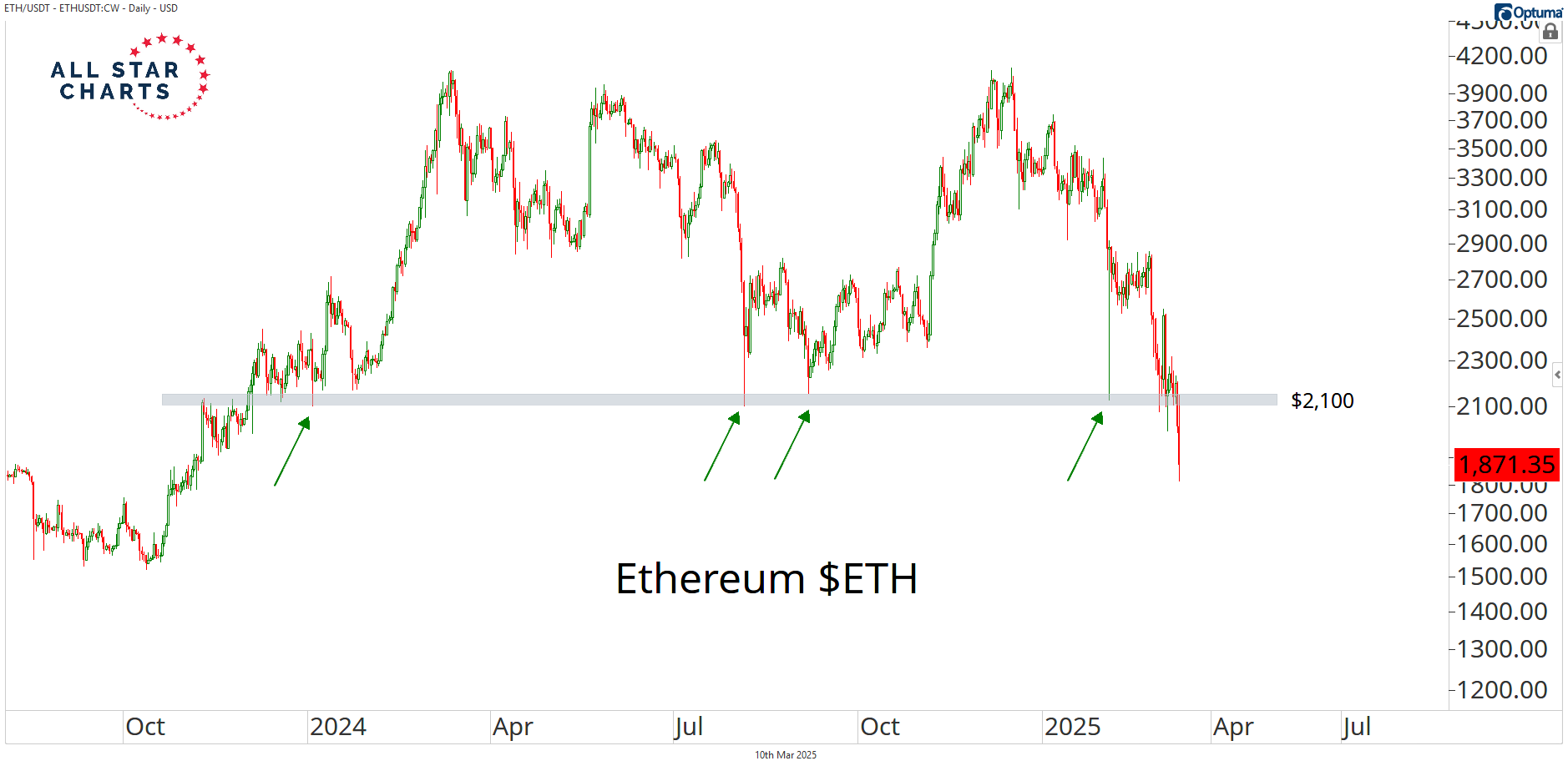 The same is true for Ethereum breaching below $2,100.