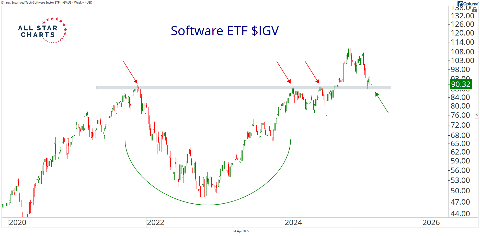 The Software ETF $IGV is retesting its prior cycle highs from 2021.