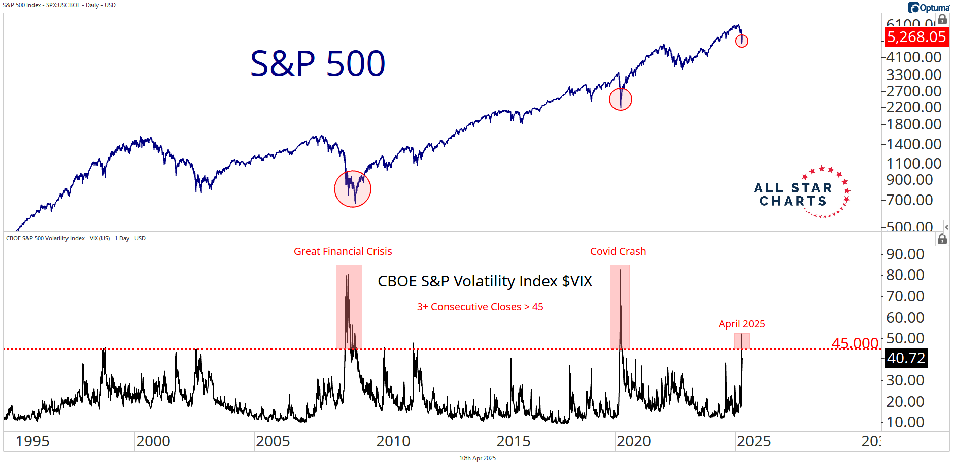 The CBOE Volatility Index $VIX just closed above 45 for three straight sessions this week.
