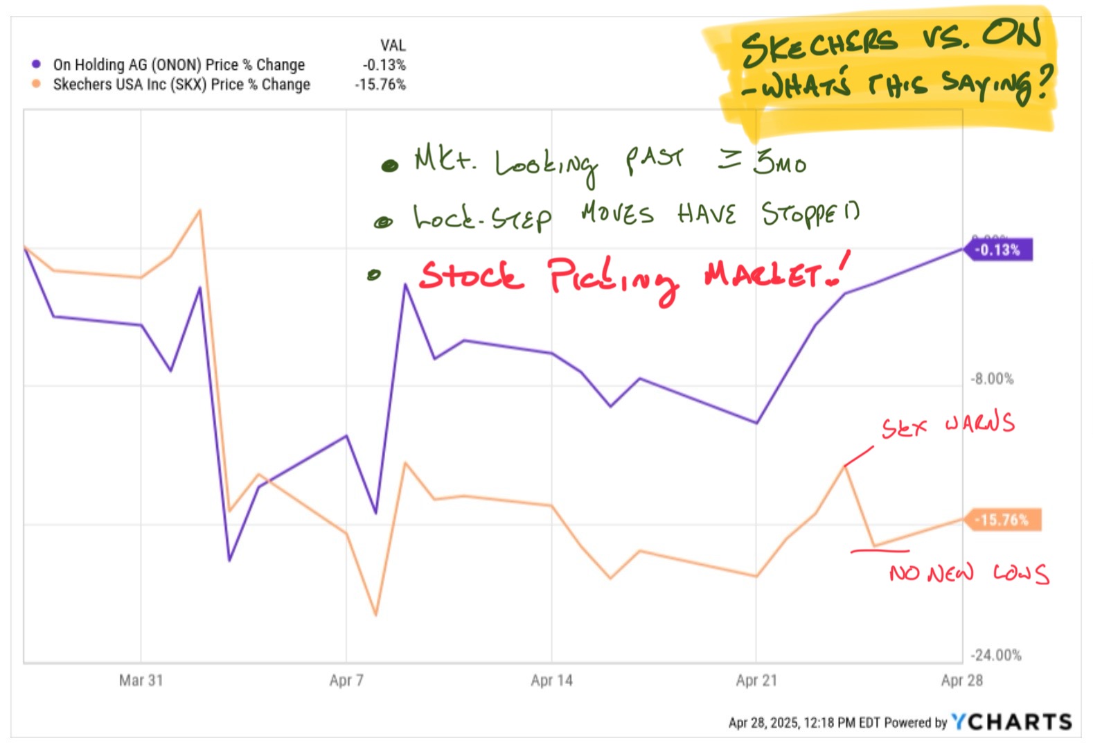 As a result ONON has seen a bounce off the panic. SKX, not so much