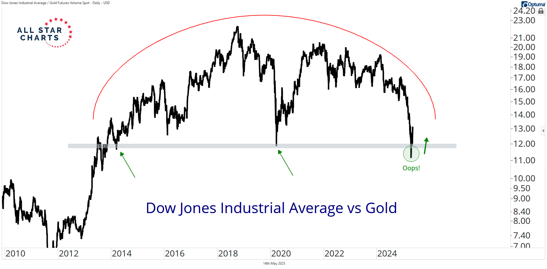The ratio recently broke down below key support, but instead of following through lower, it snapped right back above that level.