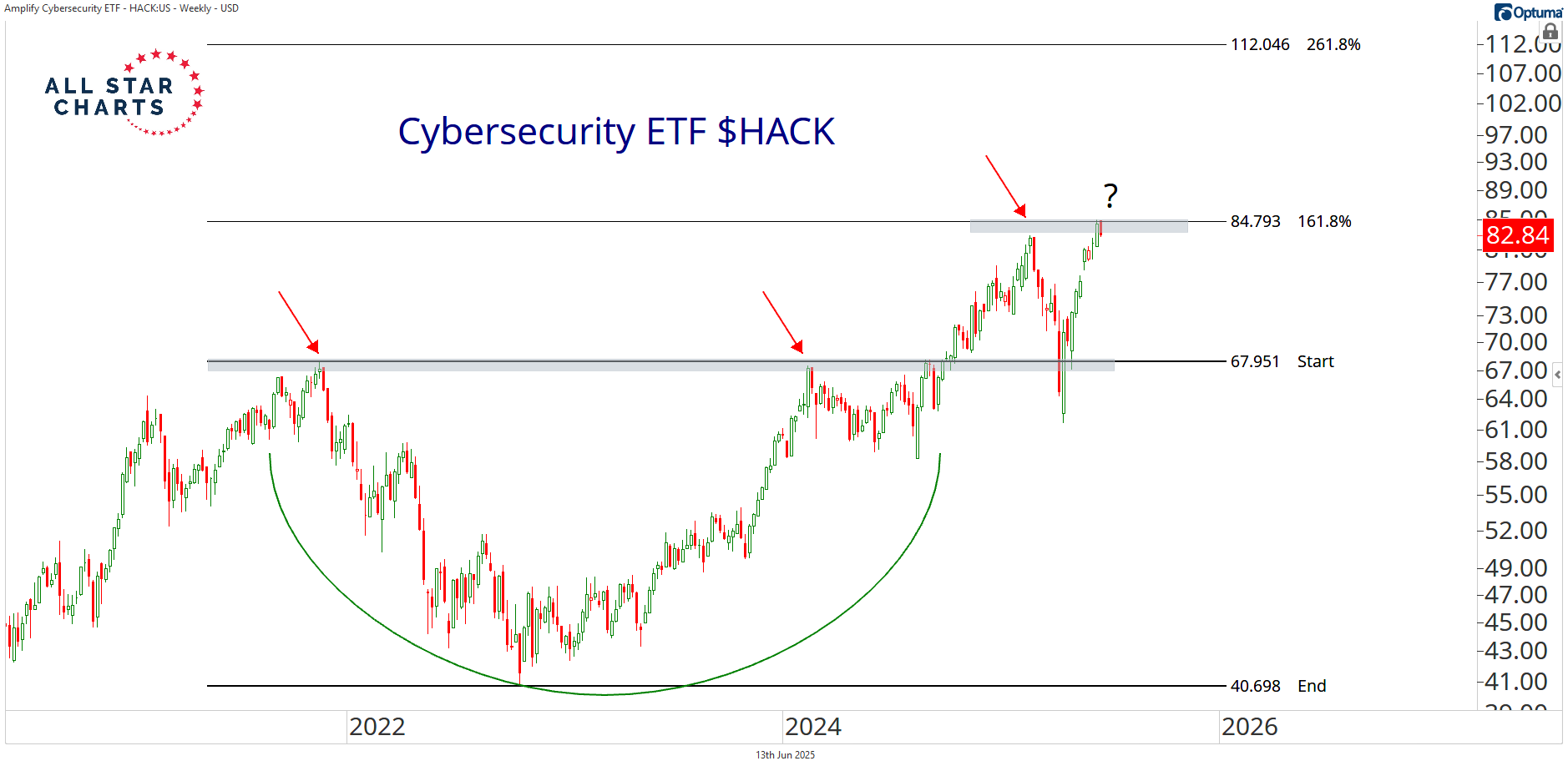 After a clean retest of its prior cycle highs, HACK is boomeranging with a near-vertical move.