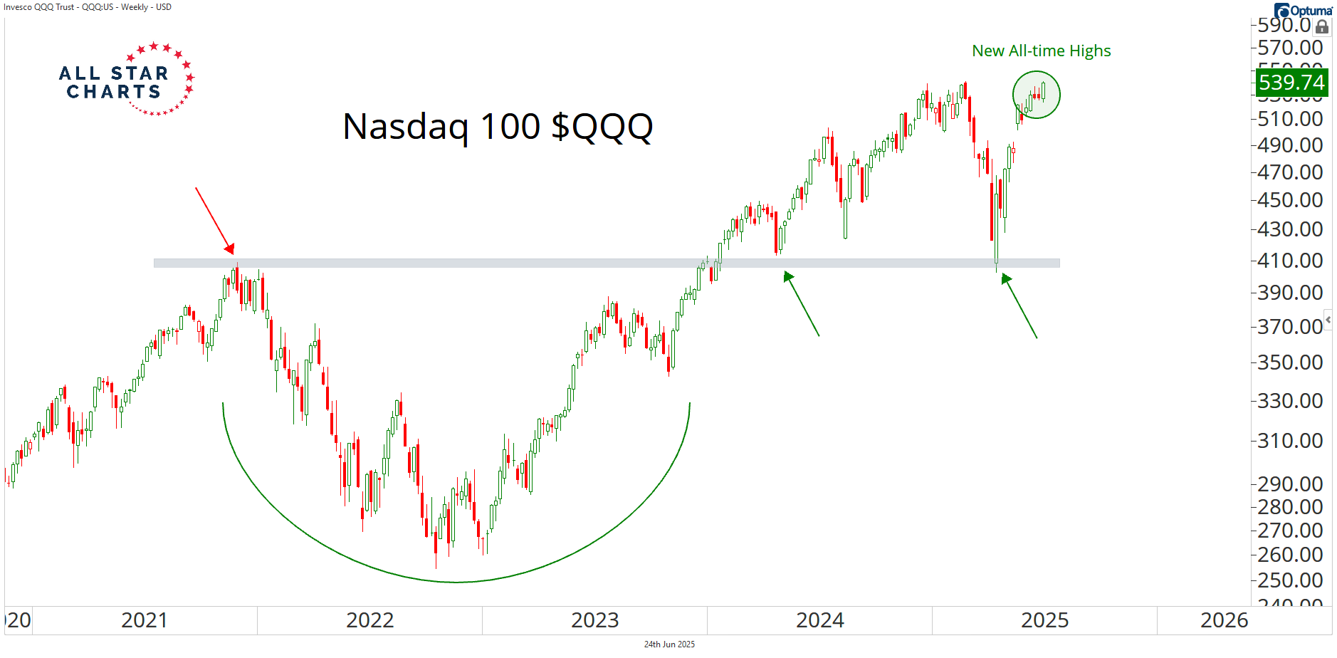 The Nasdaq 100 $QQQ just completed a historic V-bottom with a breakout to fresh all-time highs.