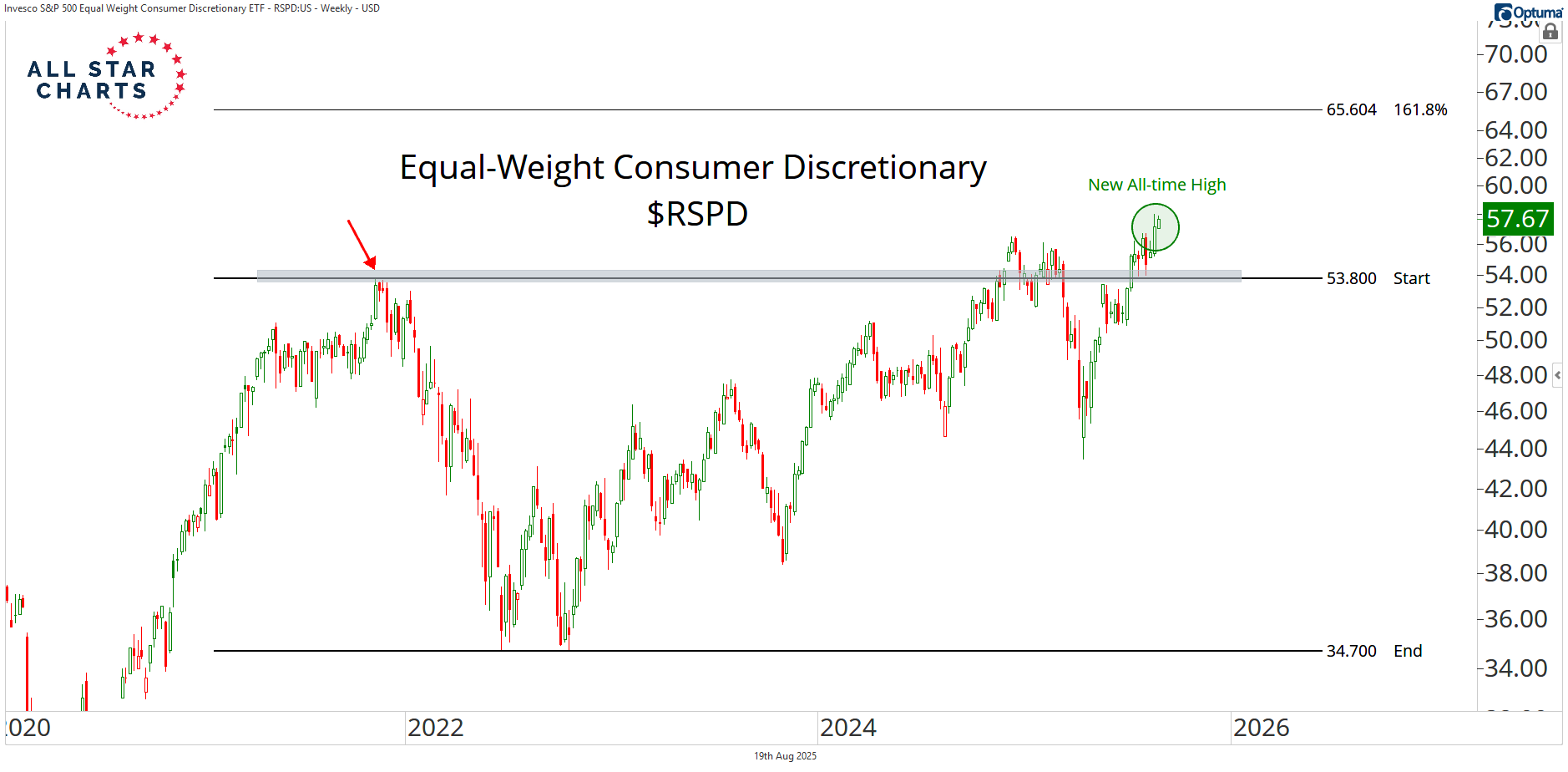 Right now, RSPD is breaking out to new all-time highs.