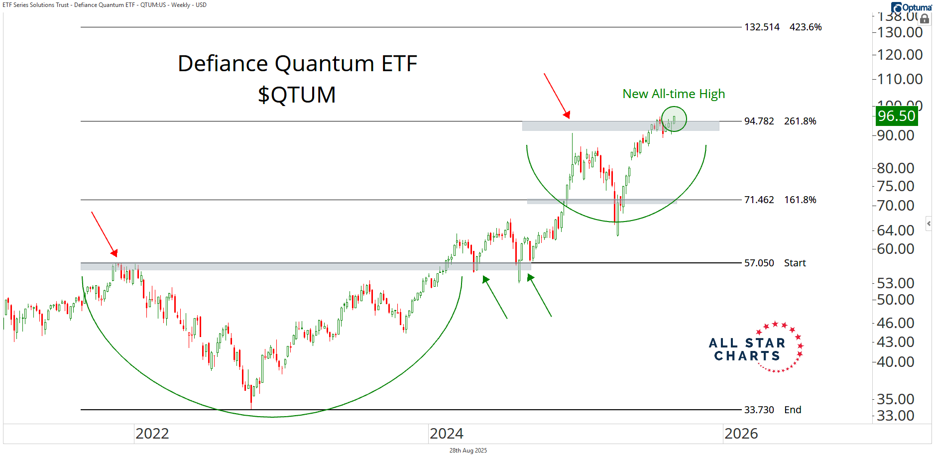 Here you’re looking at the Defiance Quantum ETF $QTUM pushing out of a clean base to fresh all-time highs.