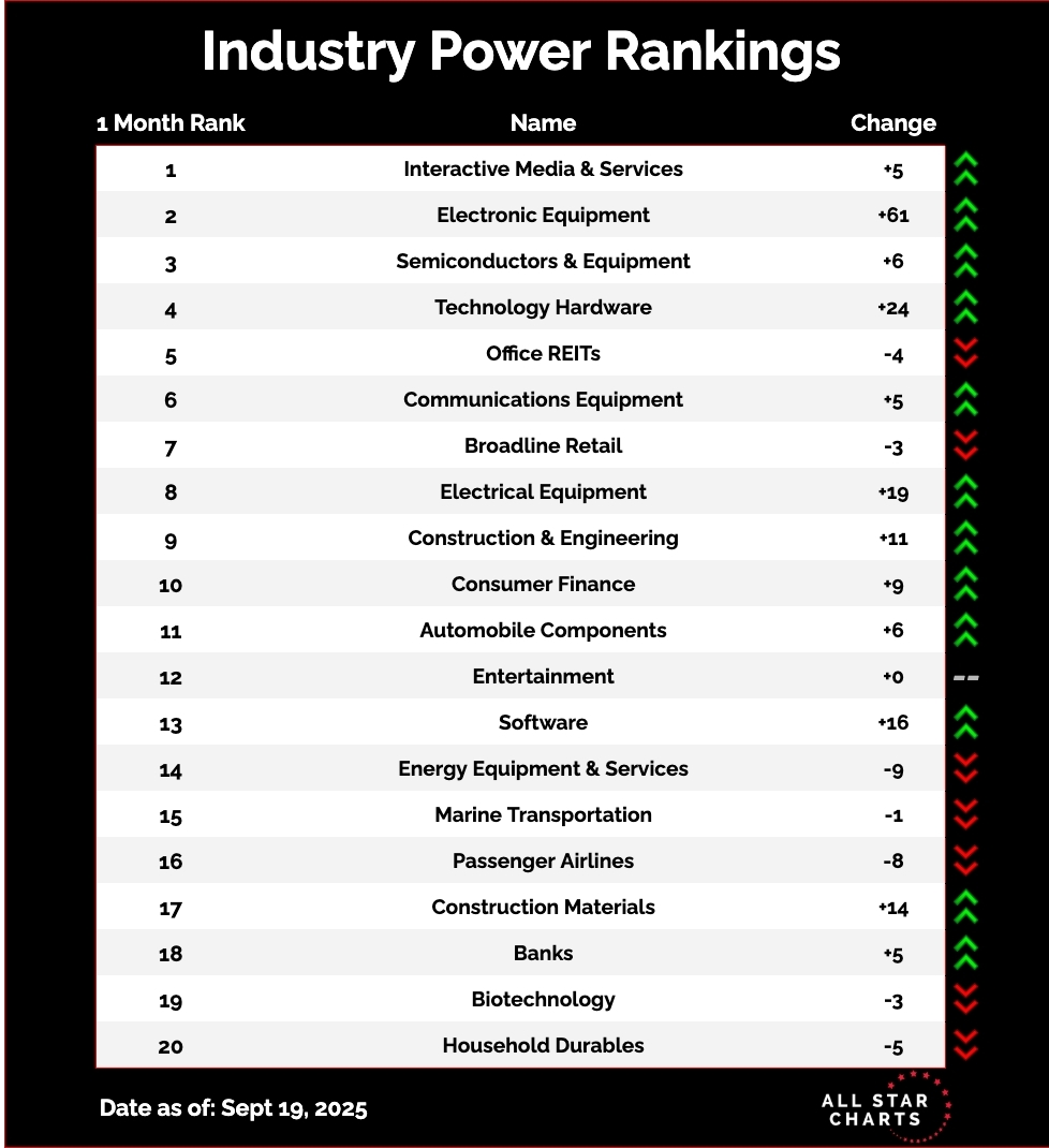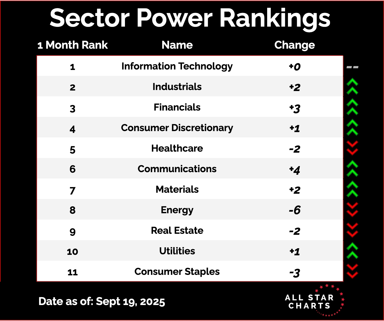 Risk appetite is clearly on the rise. Alongside Tech, other offensive sectors like Industrials, Financials, and Consumer Discretionary are crowding the top of our rankings.