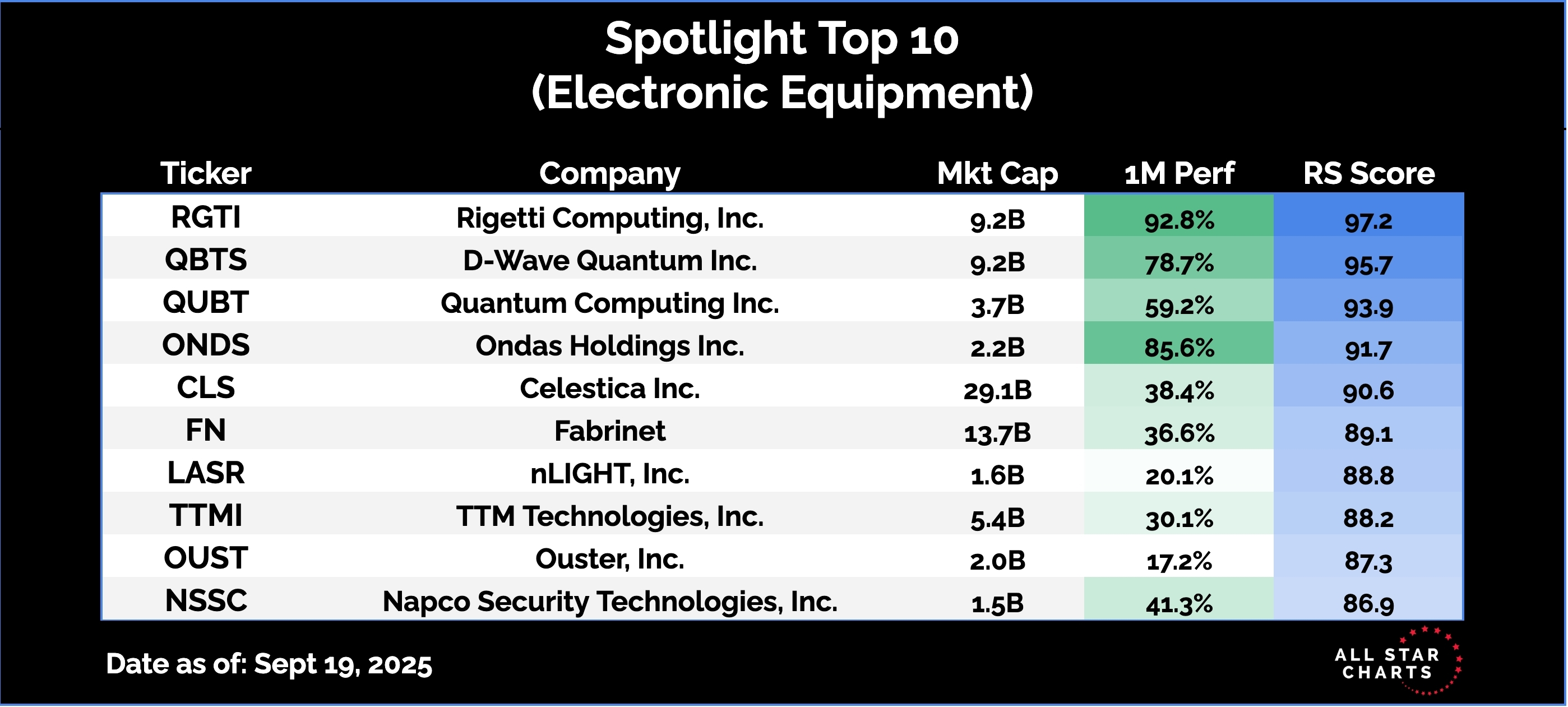 Below are the Top 10 names in the Electronic Equipment, subsector, ranked by relative strength.