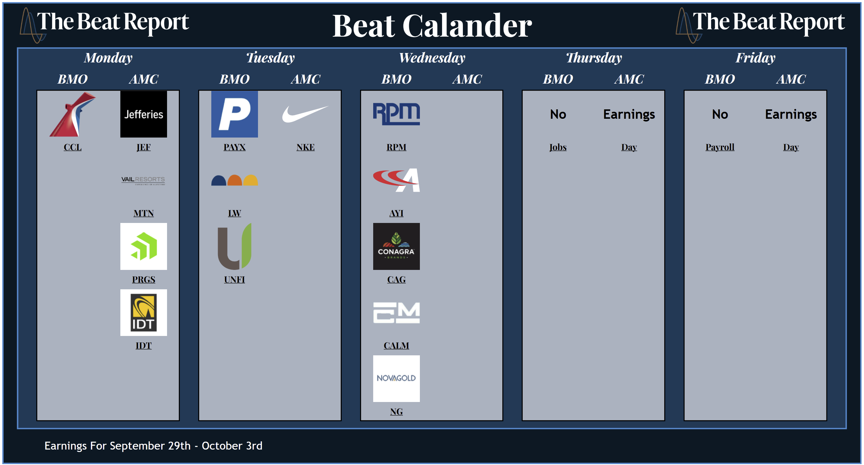 This is one of the final weeks before the end of the current earnings season, so it'll be on the slower side. However, there will be plenty to cover at the Daily Beat.