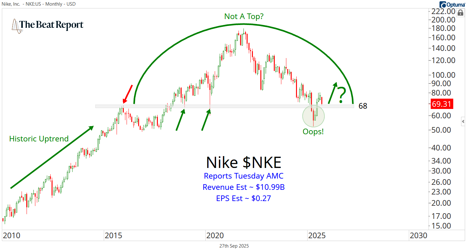 Here's the setup in NKE ahead of Tuesday's earnings report πŸ‘‡