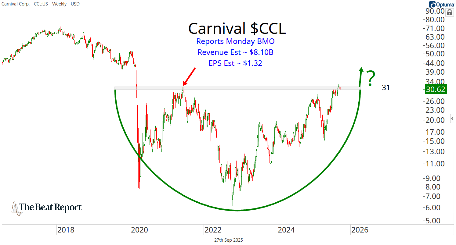 Here's the setup in CCL ahead of Monday's earnings report πŸ‘‡