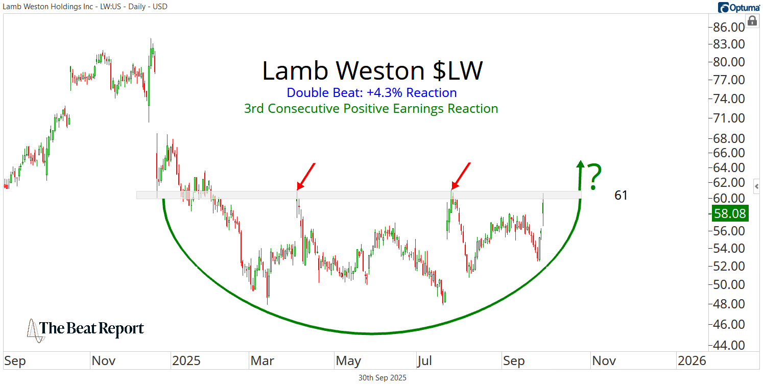 LW had its third consecutive positive earnings reaction πŸ”₯