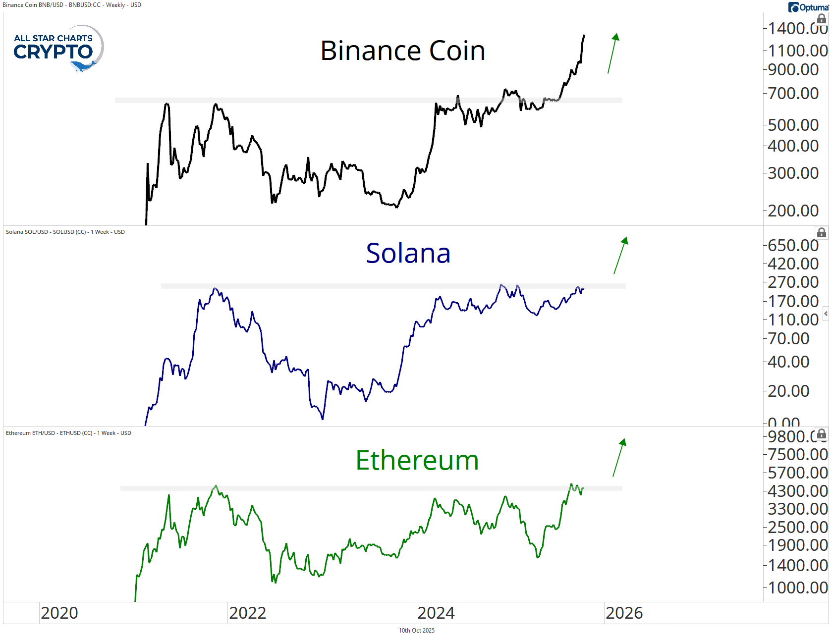 Just look at Solana and Ethereum — the fourth- and second-largest cryptocurrencies. Their charts look identical to Binance before it ripped higher.