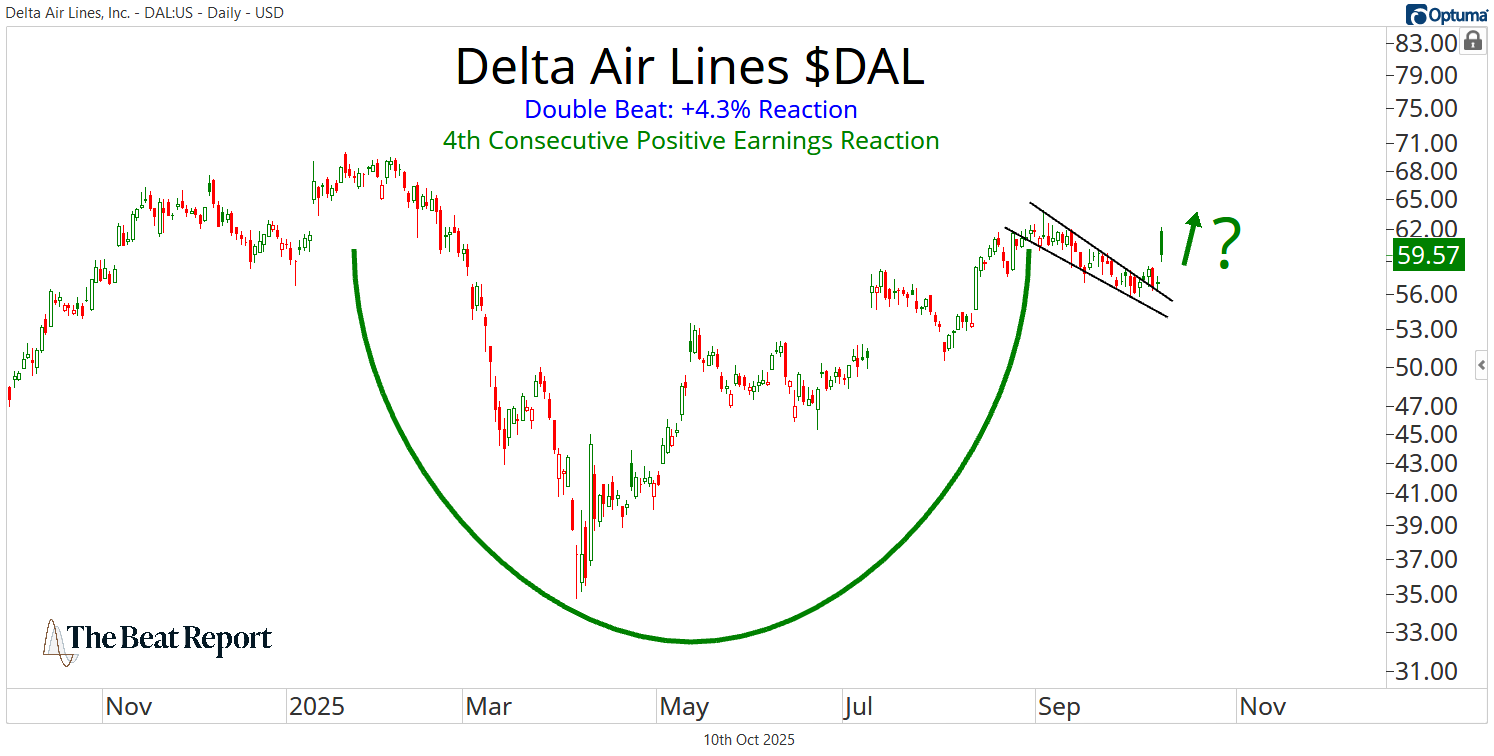 DAL had its fourth consecutive positive earnings reaction πŸ”₯