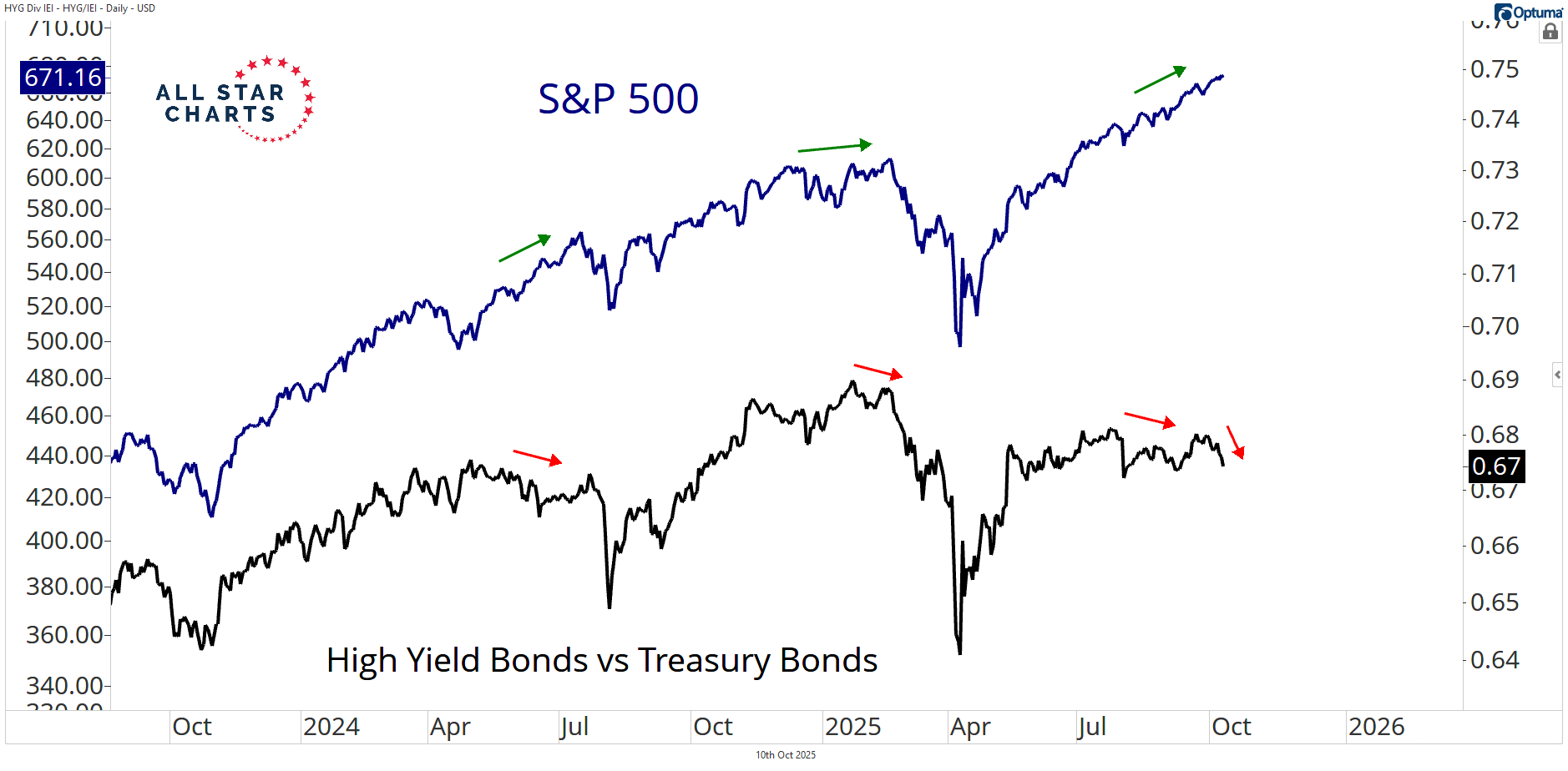 When confidence is high, investors favor high-yield bonds over Treasuries. The opposite is true when caution rises: money flows back into Treasuries.