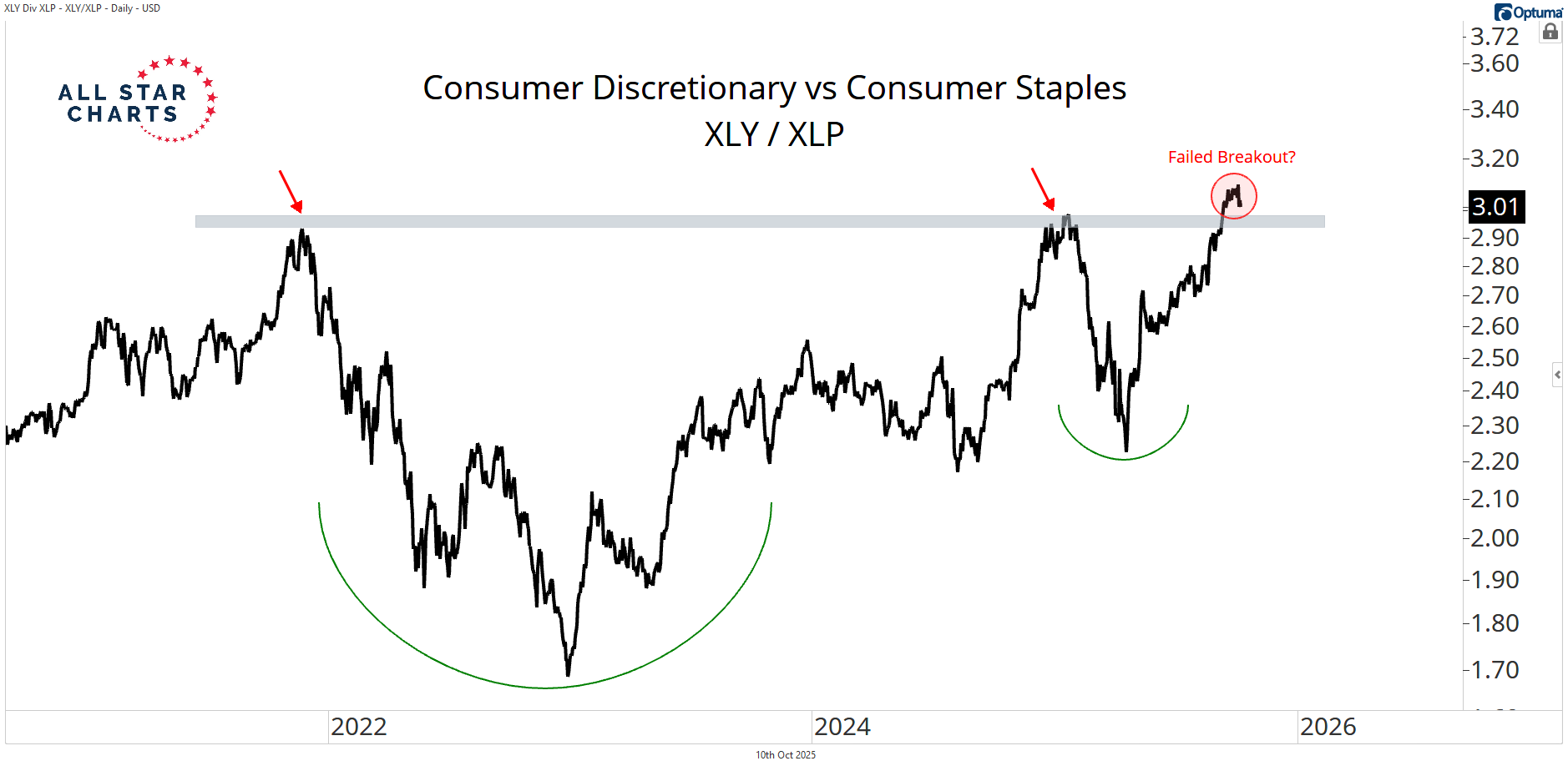 Right now, XLY/XLP is holding above prior cycle highs, maintaining its breakout.