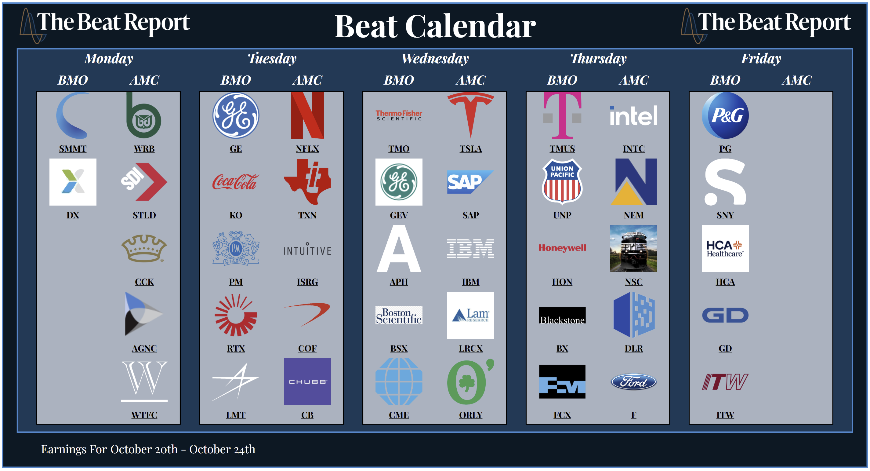 At the top of our radar will be Tesla $TSLA, GE Aerospace $GE, and Newmont $NEM.
