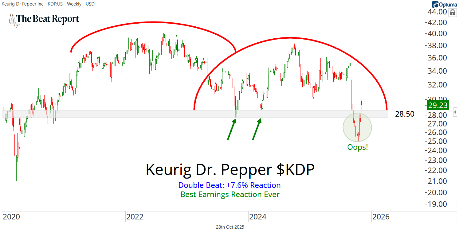 Keurig Dr. Pepper had a +7.6% post-earnings reaction, and here's what happened: