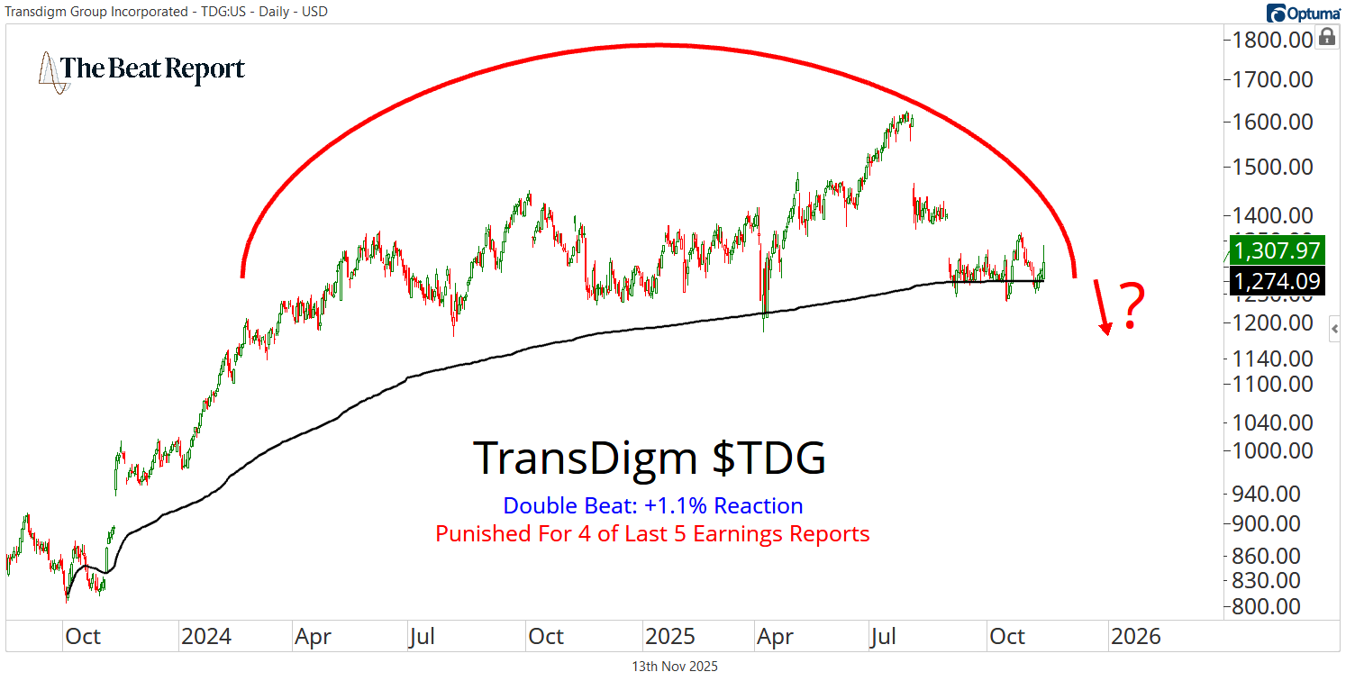 Wednesday's only beat came from TransDigm $TDG, the $74B producer of aircraft parts and systems used in commercial and military planes. The company beat expectations across the board and had a +0.58 reaction score.