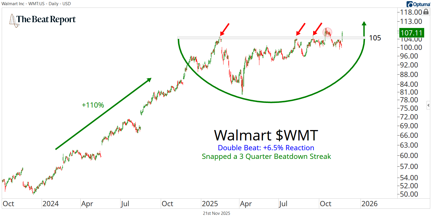 Walmart had a +6.5% post-earnings reaction, and here's what happened: