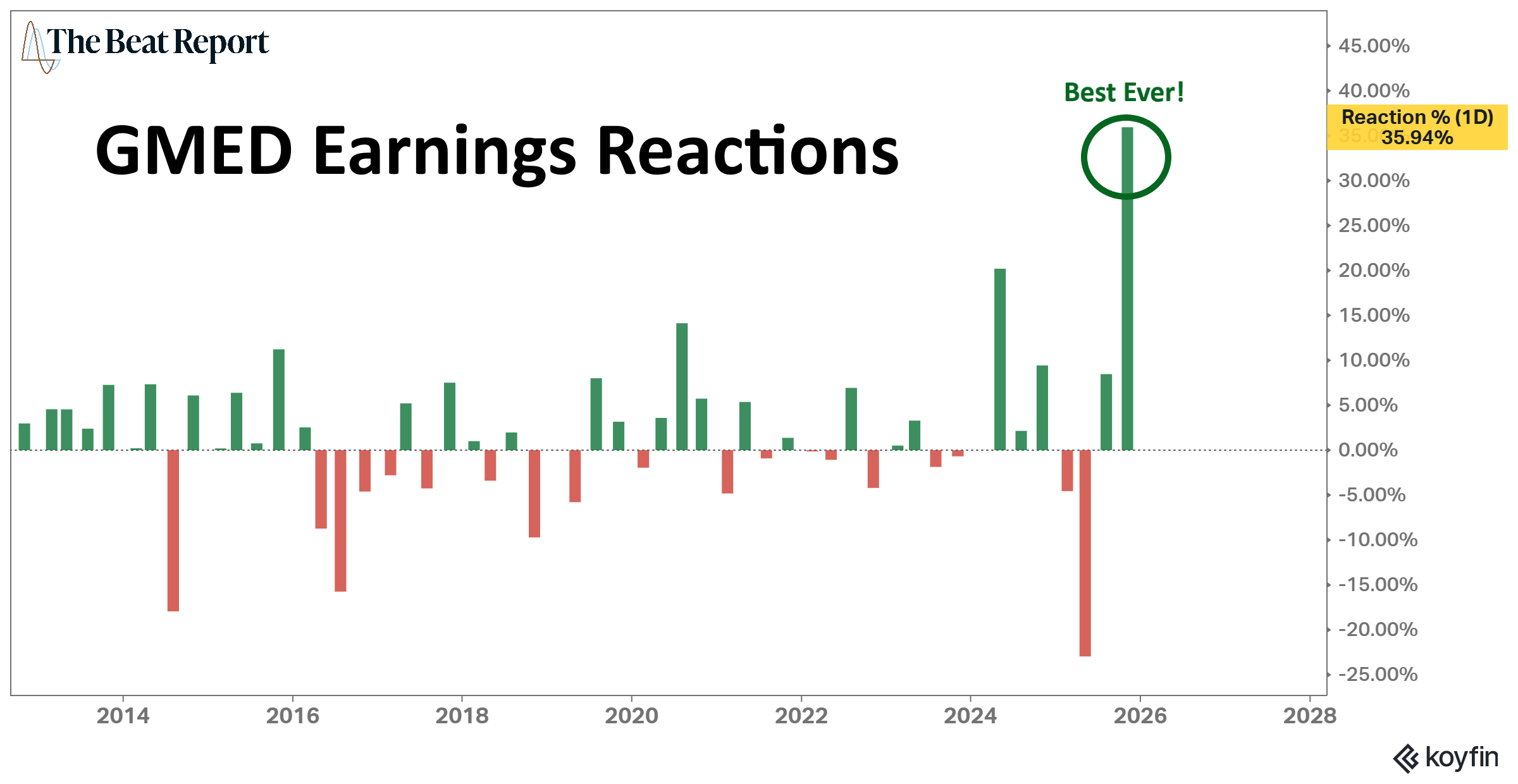 Following a blockbuster earnings report earlier this month, Globus Medical rallied nearly 36% in a single session. This was the stock's best earnings reaction ever.