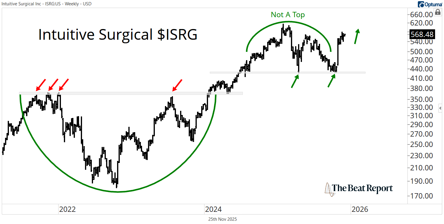 And when you look at the ISRG weekly chart, that reaction fits perfectly into a much bigger picture.