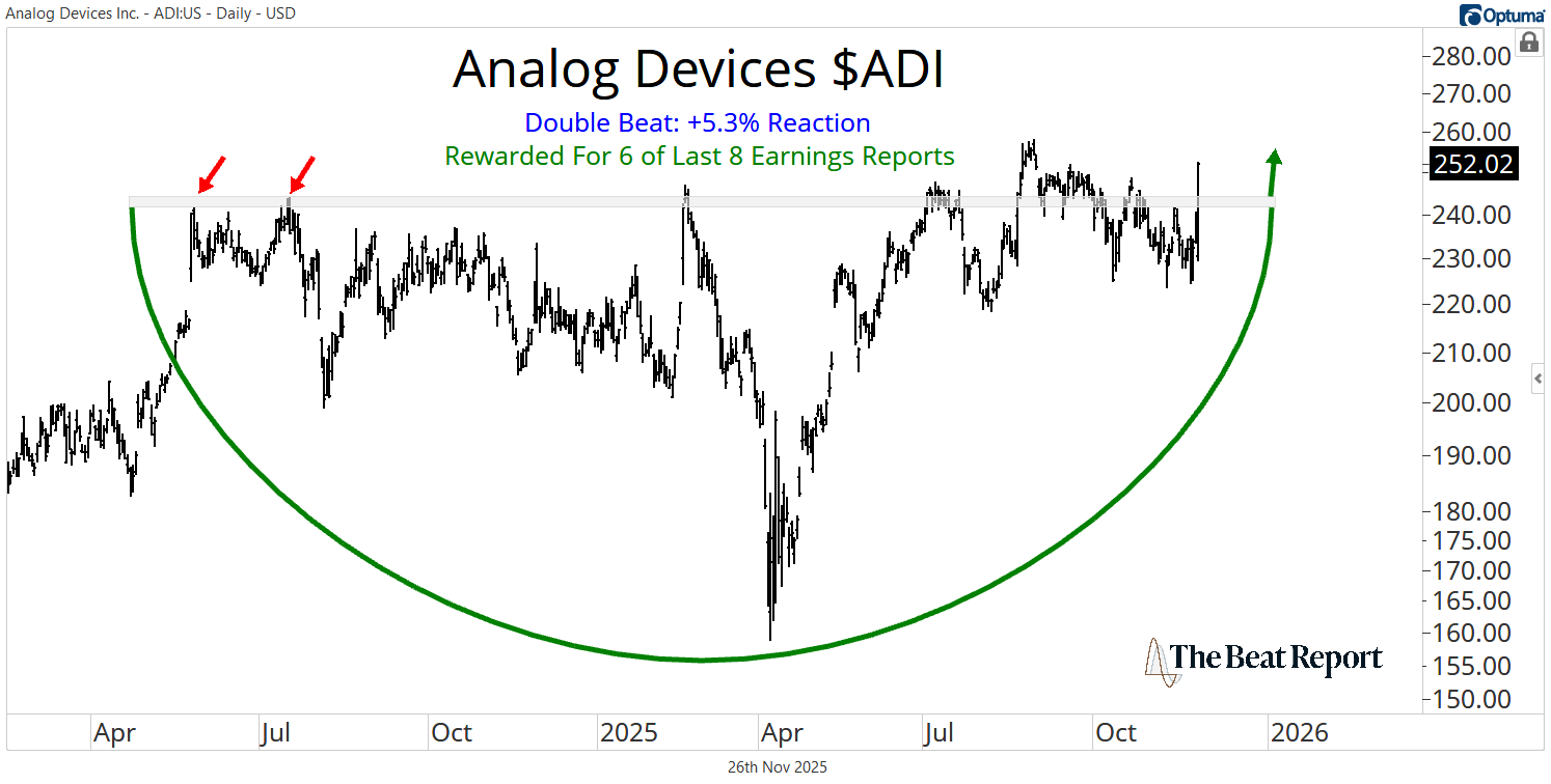 ADI has been rewarded for six of its last eight earnings reports πŸ”₯