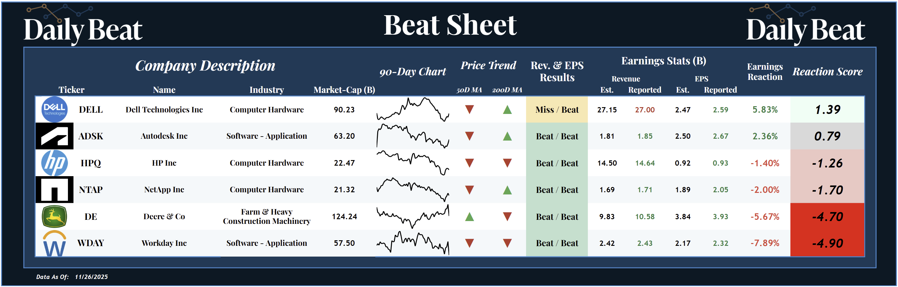 In the Daily Beat, we spotlight the most important S&P 500 earnings moves from the prior session - the winners, the losers, and the reactions that reveal what really matters to the market right now.