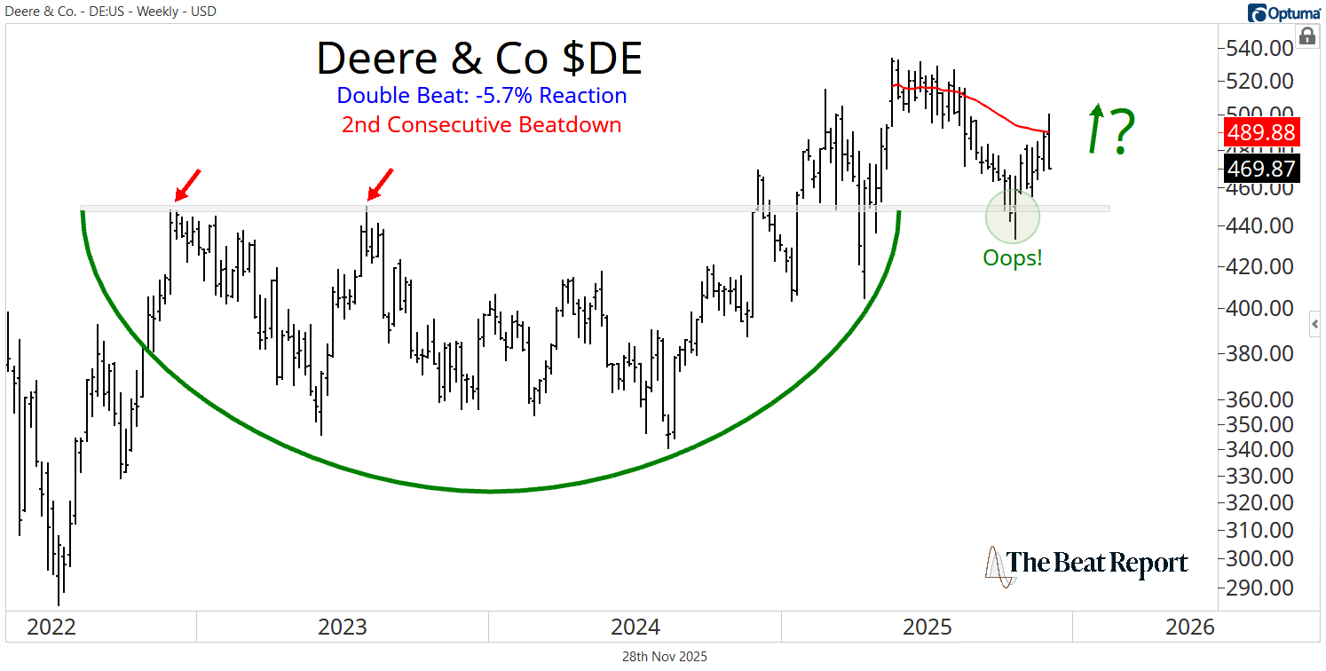 On the flip side, HP Inc $HPQ, NetApp $NTAP, Deere & Co. $DE, & Workday $WDAY were punished for reporting double beats.
