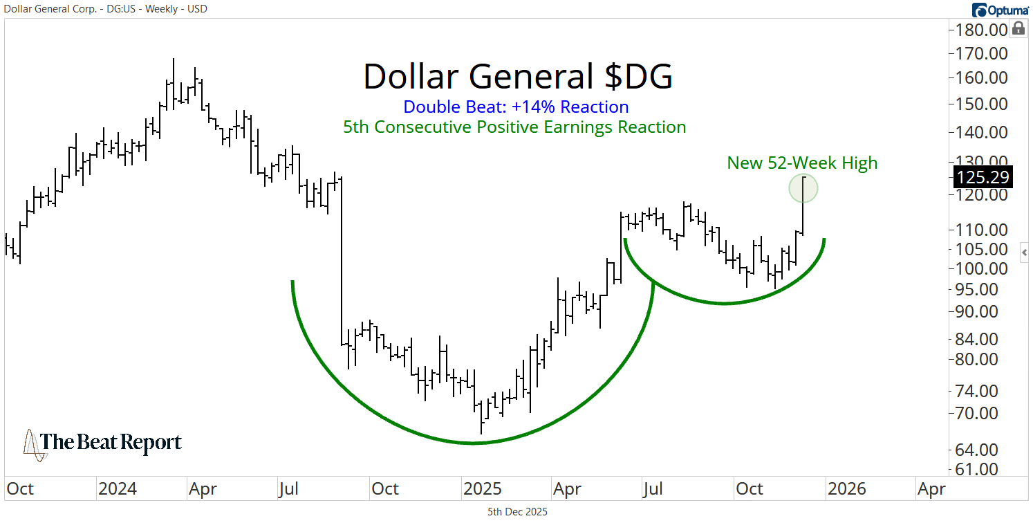 DG had its fifth consecutive positive earnings reaction πŸ”₯