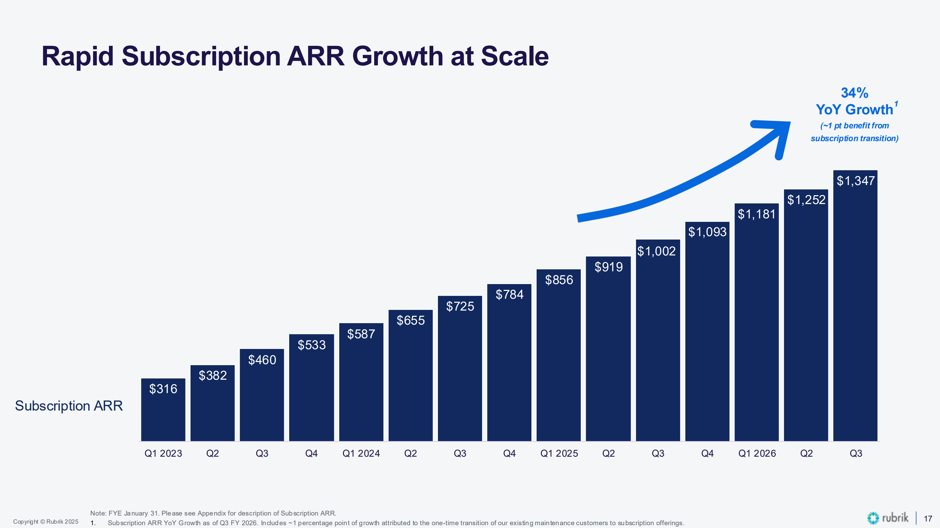 In last week's report, Rubrik delivered again with Subscription ARR up 34% year-over-year.