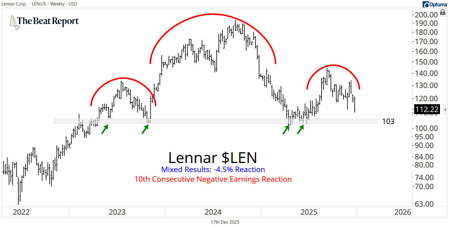 LEN had its 10th consecutive negative earnings reaction 🐻