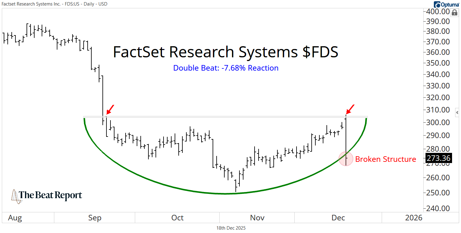 On the flip side, the $10B financial data provider, FactSet Research Systems $FDS, got slammed after posting a double beat. The reaction score came in at -5.95, one of the lowest we've seen this earnings season.