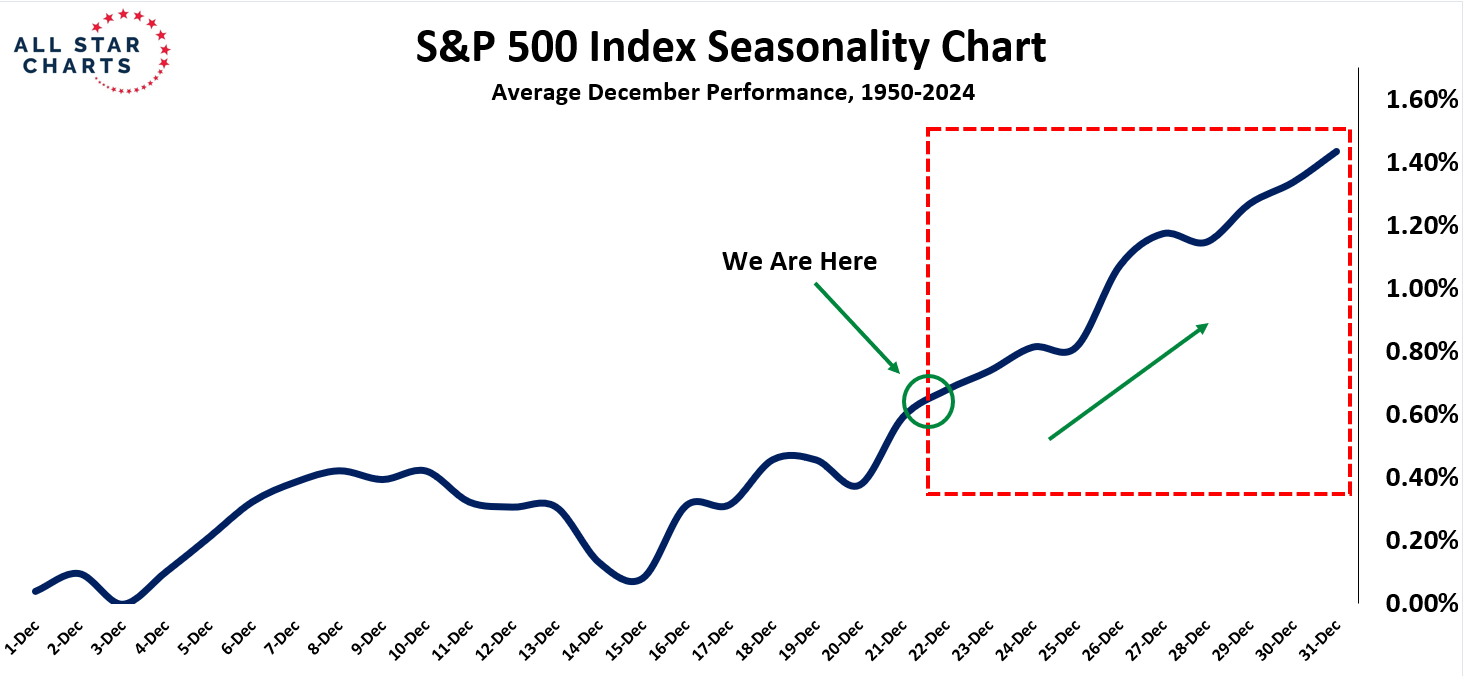 Looking back to 1950, December has been a consistently positive month for the S&P 500. What’s most interesting, though, is when those gains tend to show up.