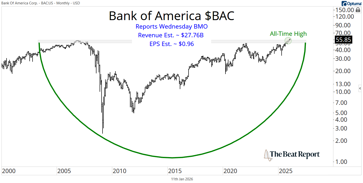 Bank of America is breaking out above its Great Financial Crisis peak and printing fresh all-time highs. It's difficult to overstate the significance of this breakout.