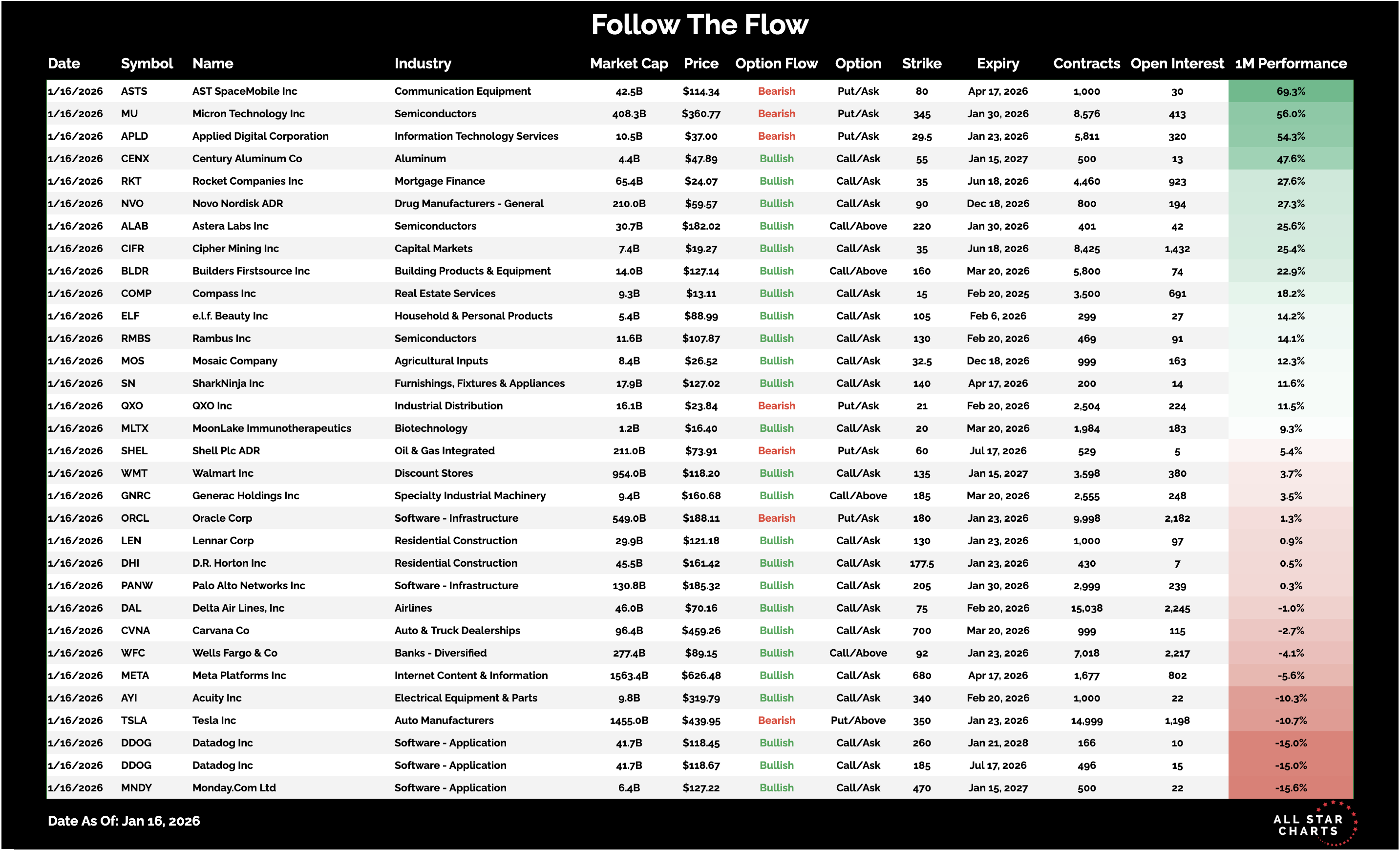 Here is the list of Unusual Options activity from January 16: