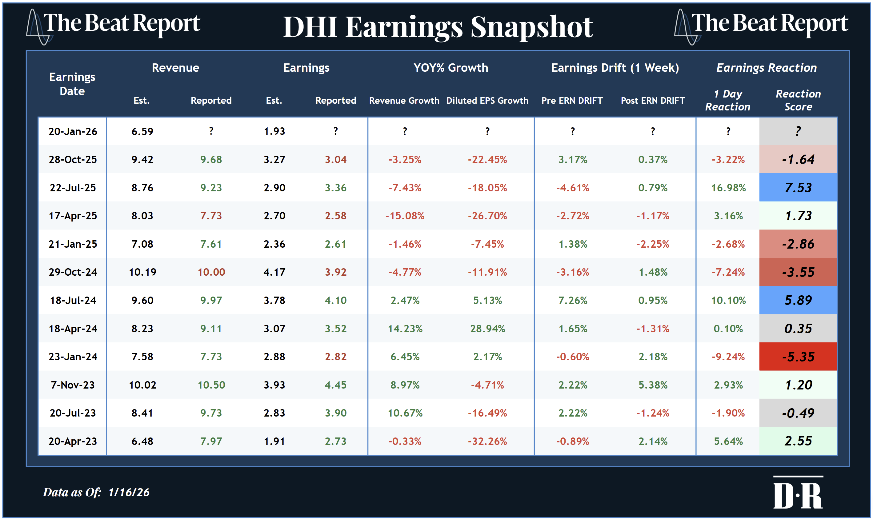One exception stands out: July 2025, when DHI delivered its best earnings reaction in years.