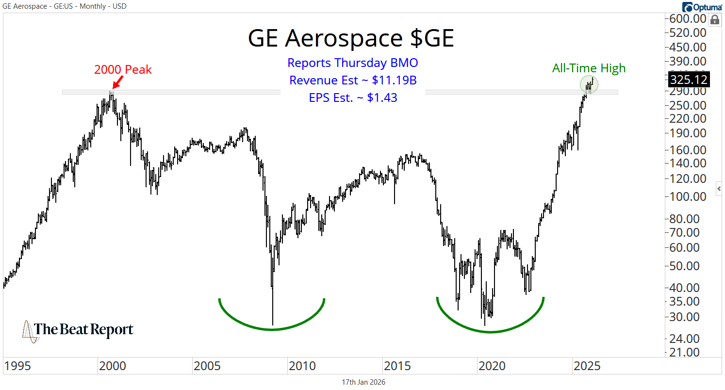 GE has finally broken above its 2000 peak and is ripping to new all-time highs, completing a multi-decade base that spans an entire generation of investors.