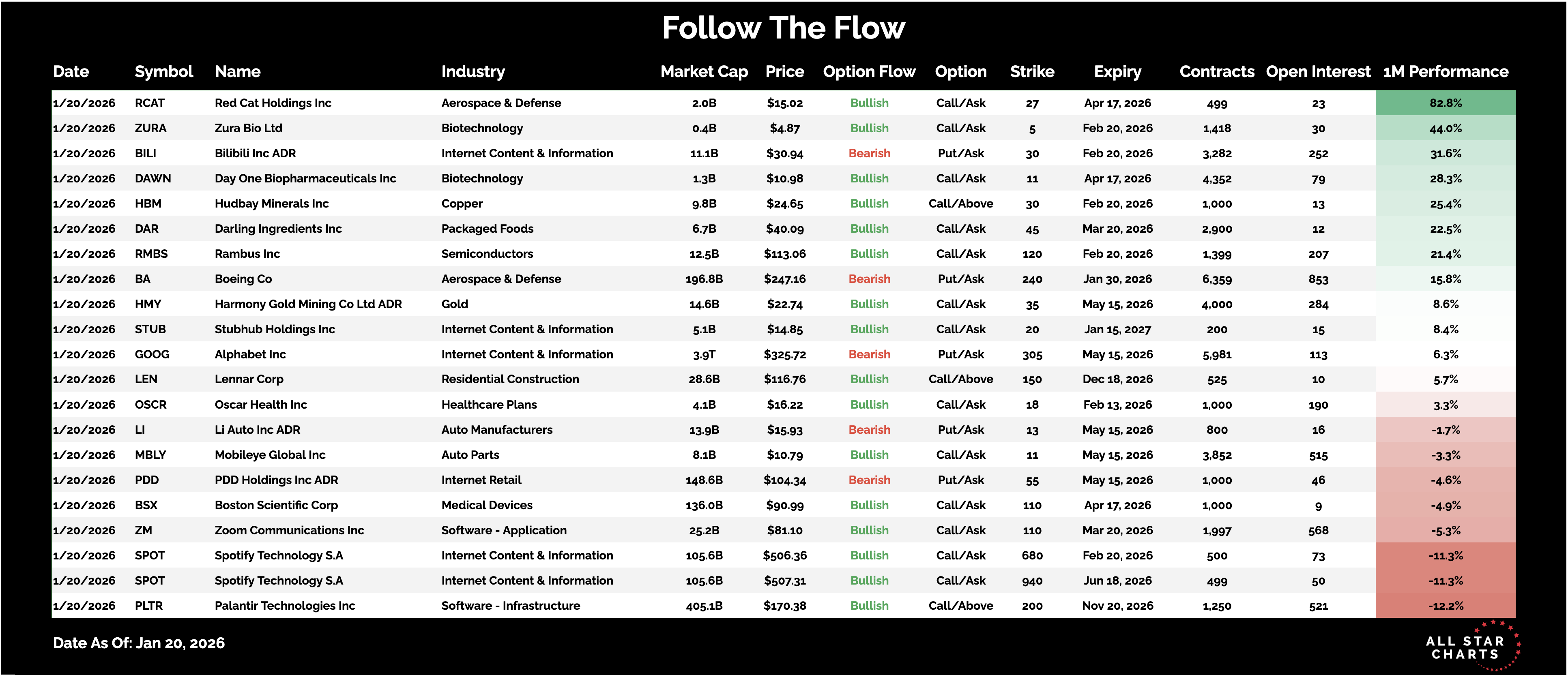 Here is the list of Unusual Options activity from January 20: