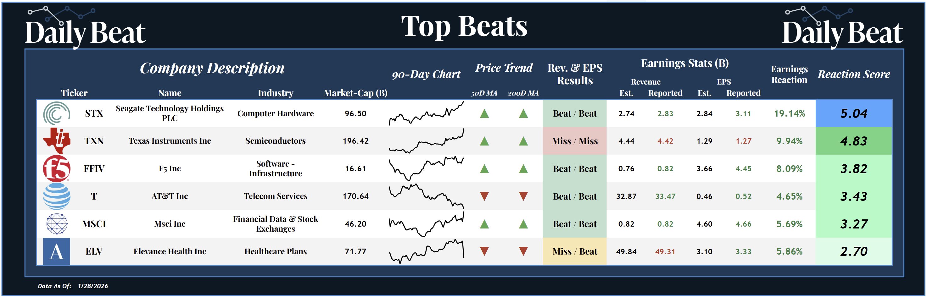 The Daily Beat spots fundamentally strong stocks showing real momentum โ a daily list built for traders who act on strength, not noise.