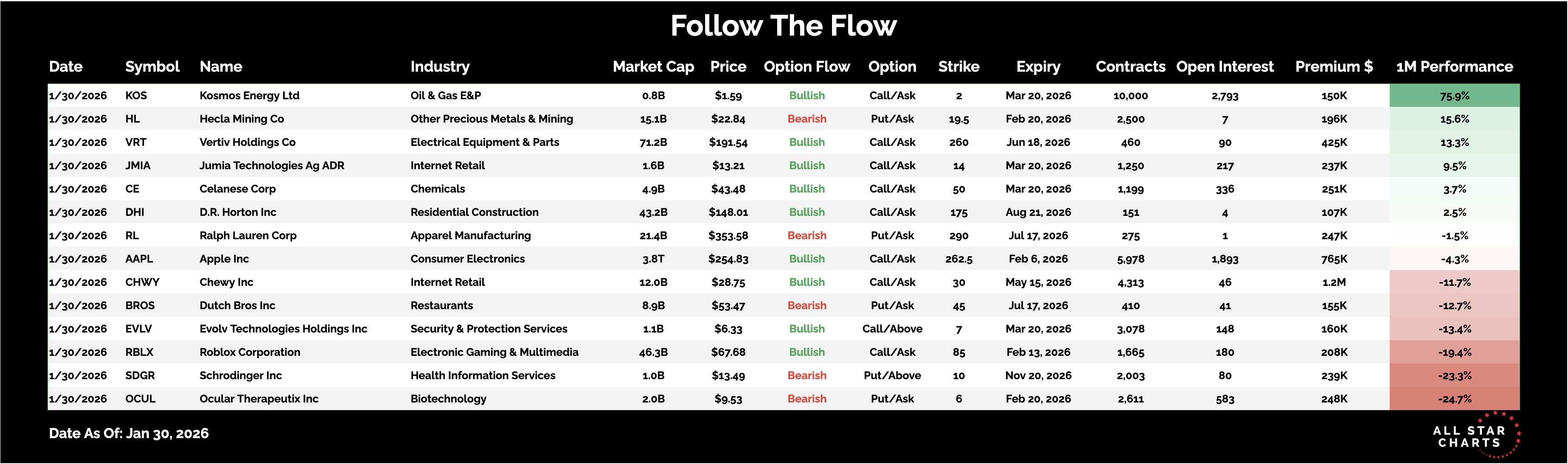Here is the list of Unusual Options activity from January 30:
