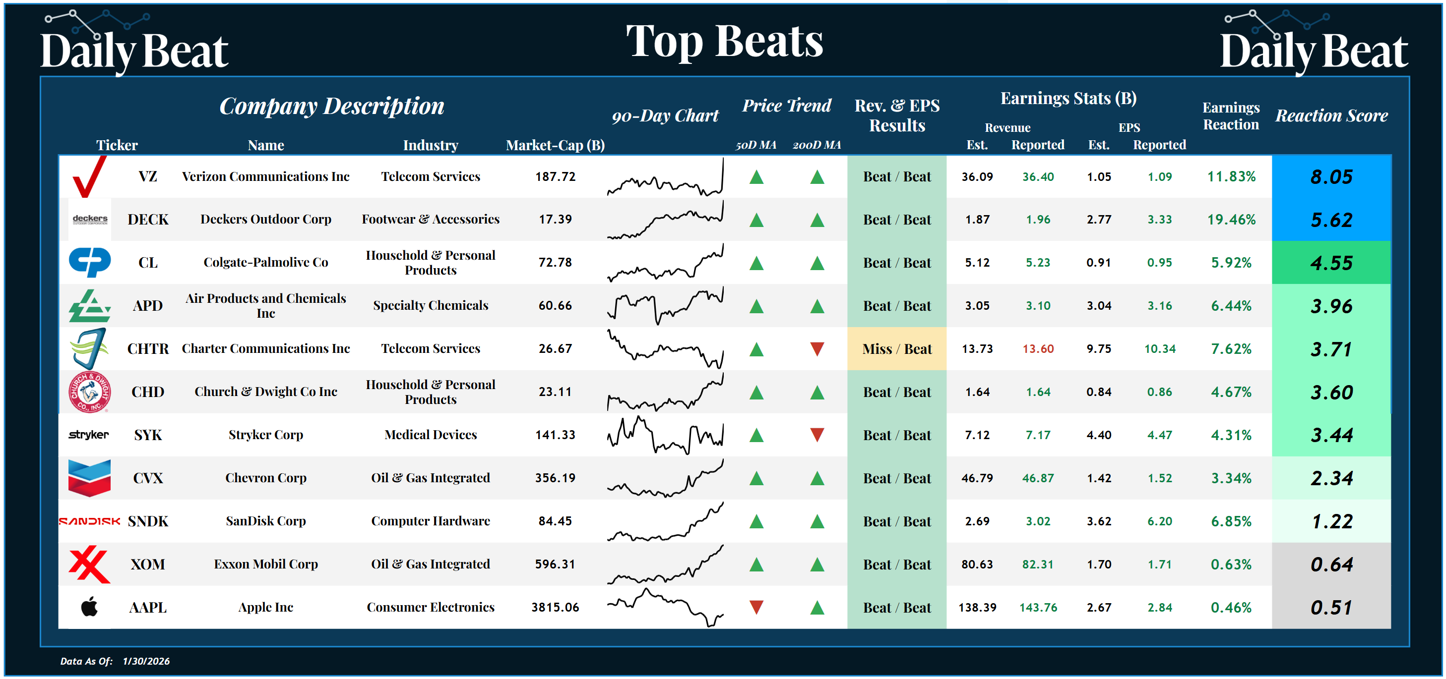 The Daily Beat spots fundamentally strong stocks showing real momentum โ a daily list built for traders who act on strength, not noise.