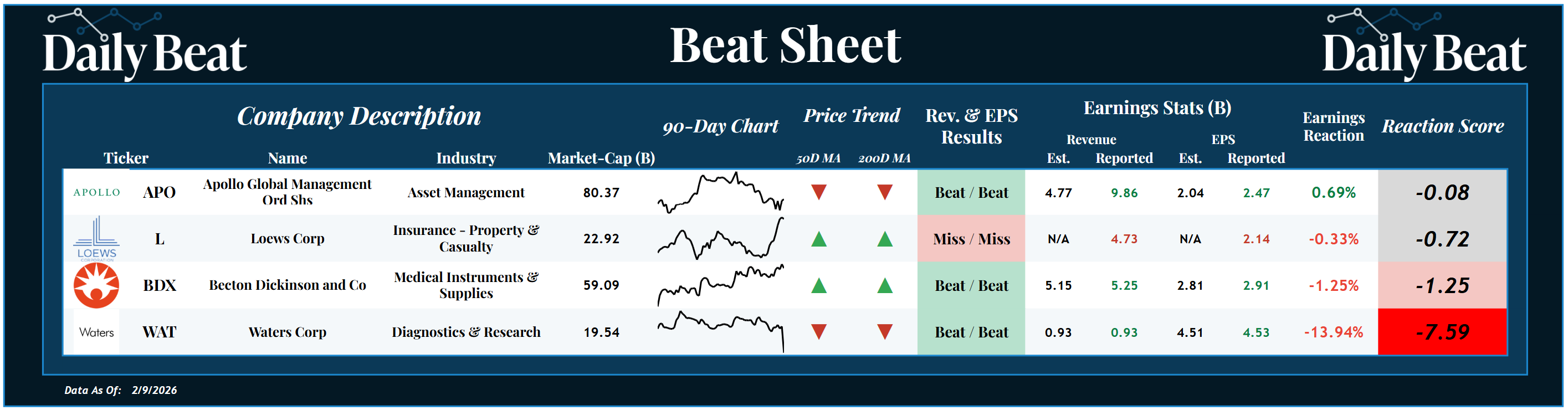At the top of Monday's Beat Sheet was the $80B asset management stock, Apollo Global Management $APO. After posting a double beat, the stock had a slightly negative reaction score.