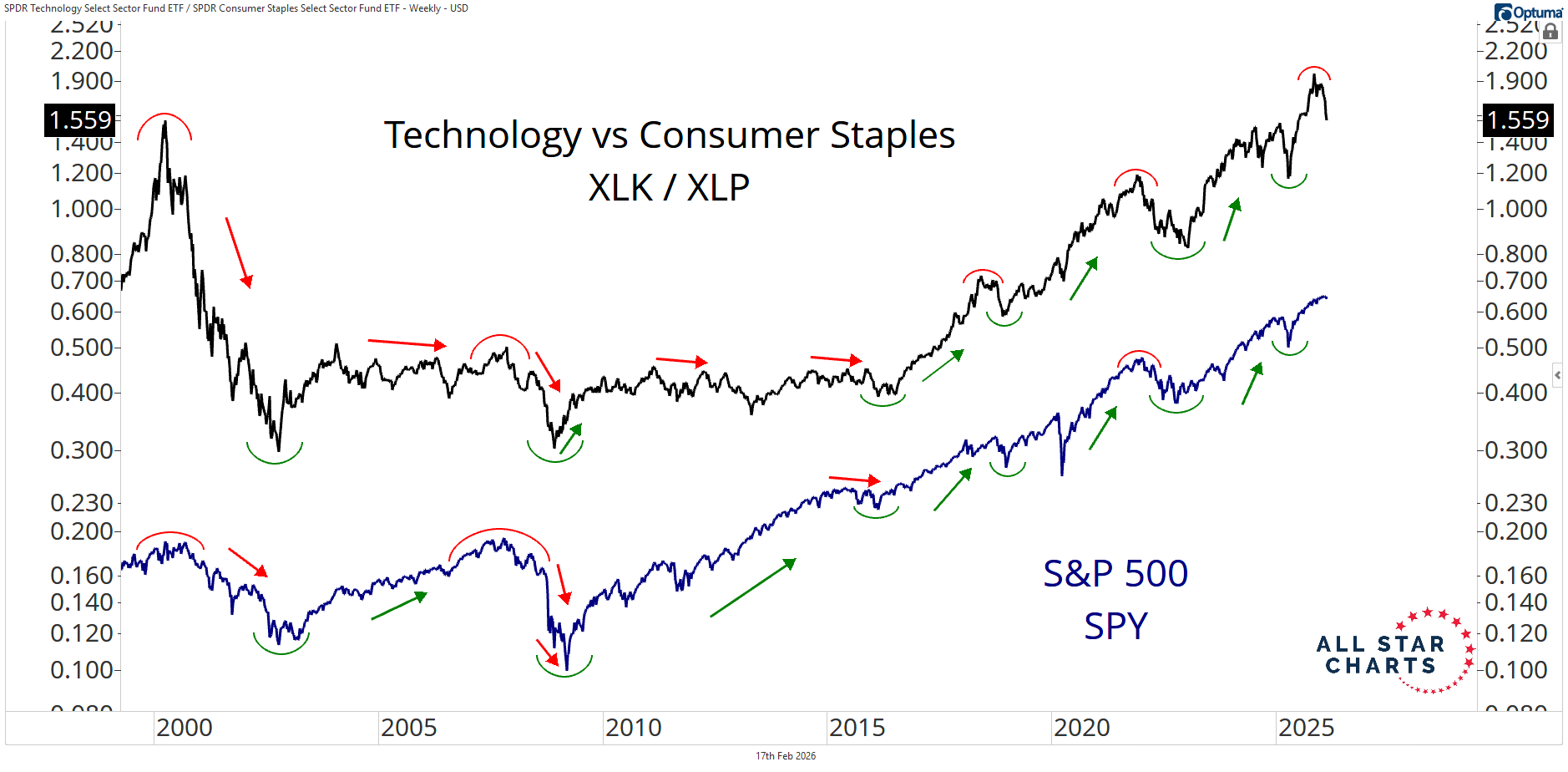 When Technology outperforms Staples, it signals investors are embracing risk.