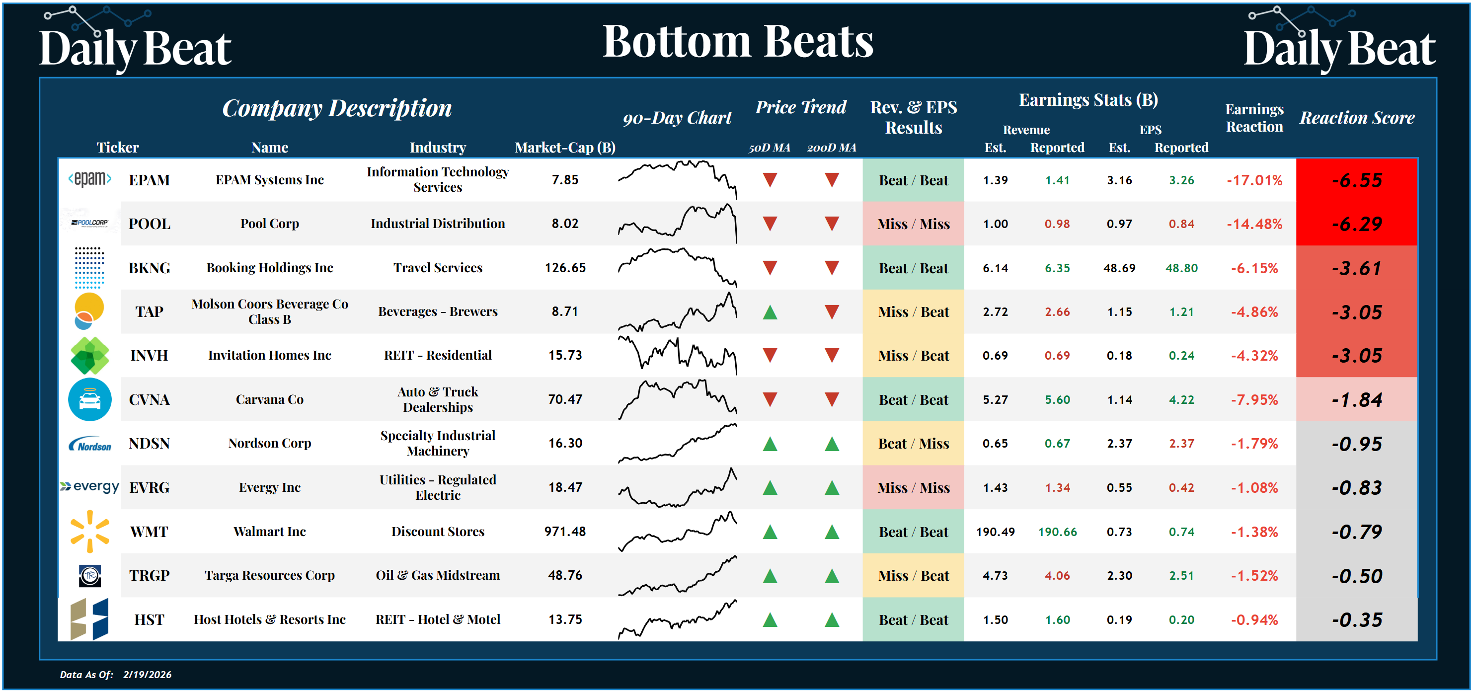 Thursday's bottom beat came from the $8B tech stock, EPAM Systems $EPAM. Despite a big double beat, shareholders suffered a -6.55 reaction score.